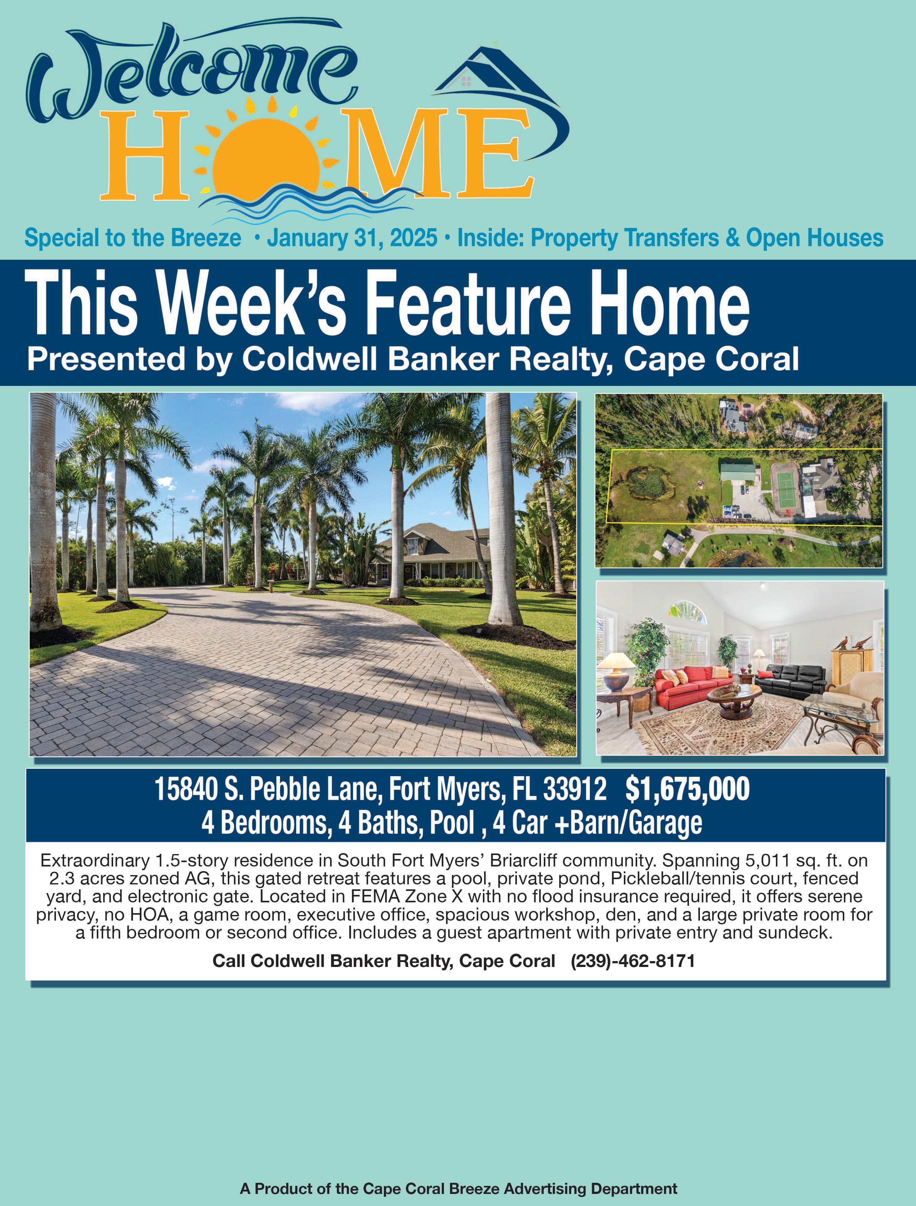 The sales data for this article was obtained from the Florida Realtors Multiple Listing Service Matrix for Lee County, Fla., as of Jan. 25, 2025, unless otherwise noted. It was compiled by Bob and Geri Quinn and it includes information