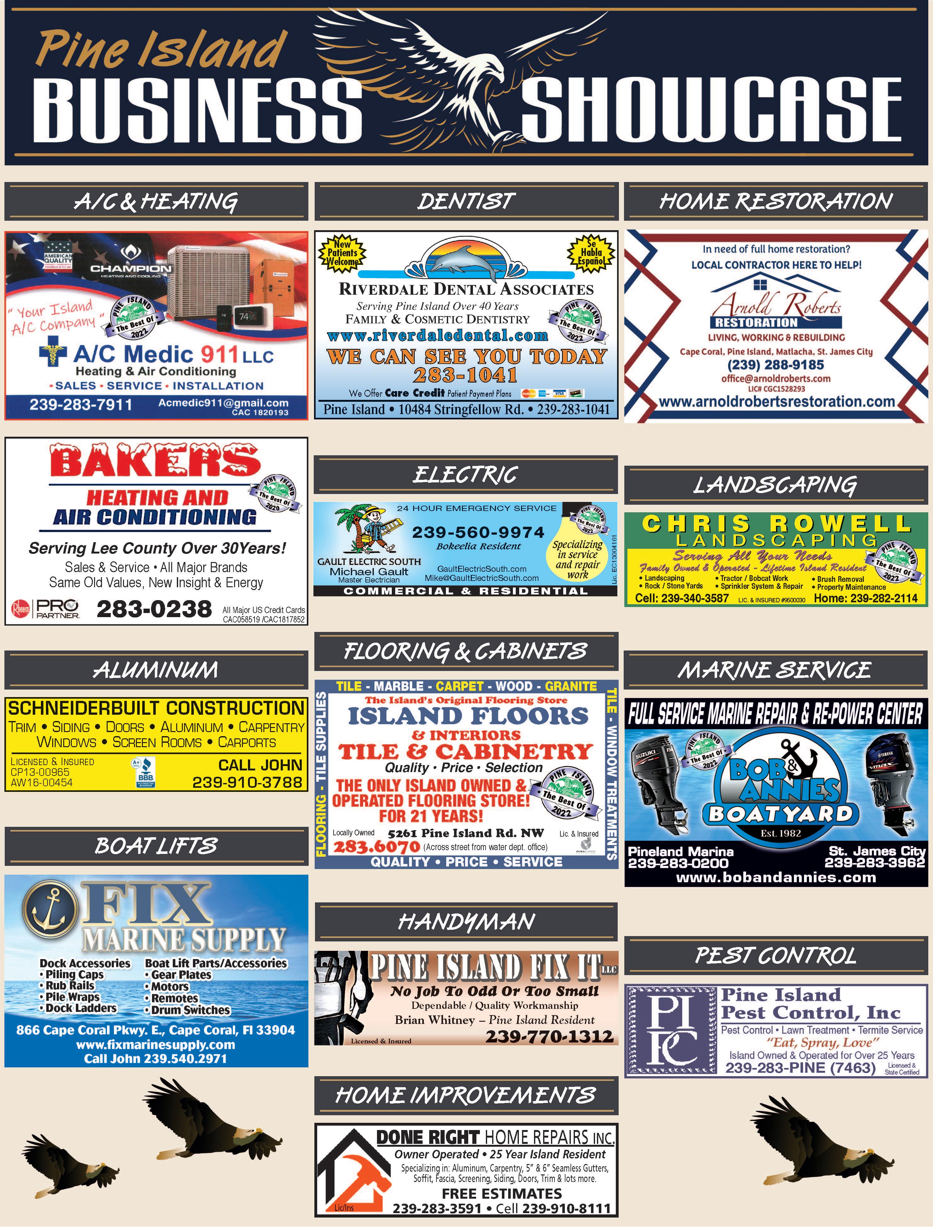 P a g e 2 3 ■ W e e k o f W e d n e s d a y , M a r c h 1 , 2 0 2 3 b r e e z e n e w s p a p e r s . c o m P i n e I s l a n d E a g l e AFFORDABLE FREE ESTIMATES $1,800.00FourZones NewInstallation IncludesPermit 2YearWarranty