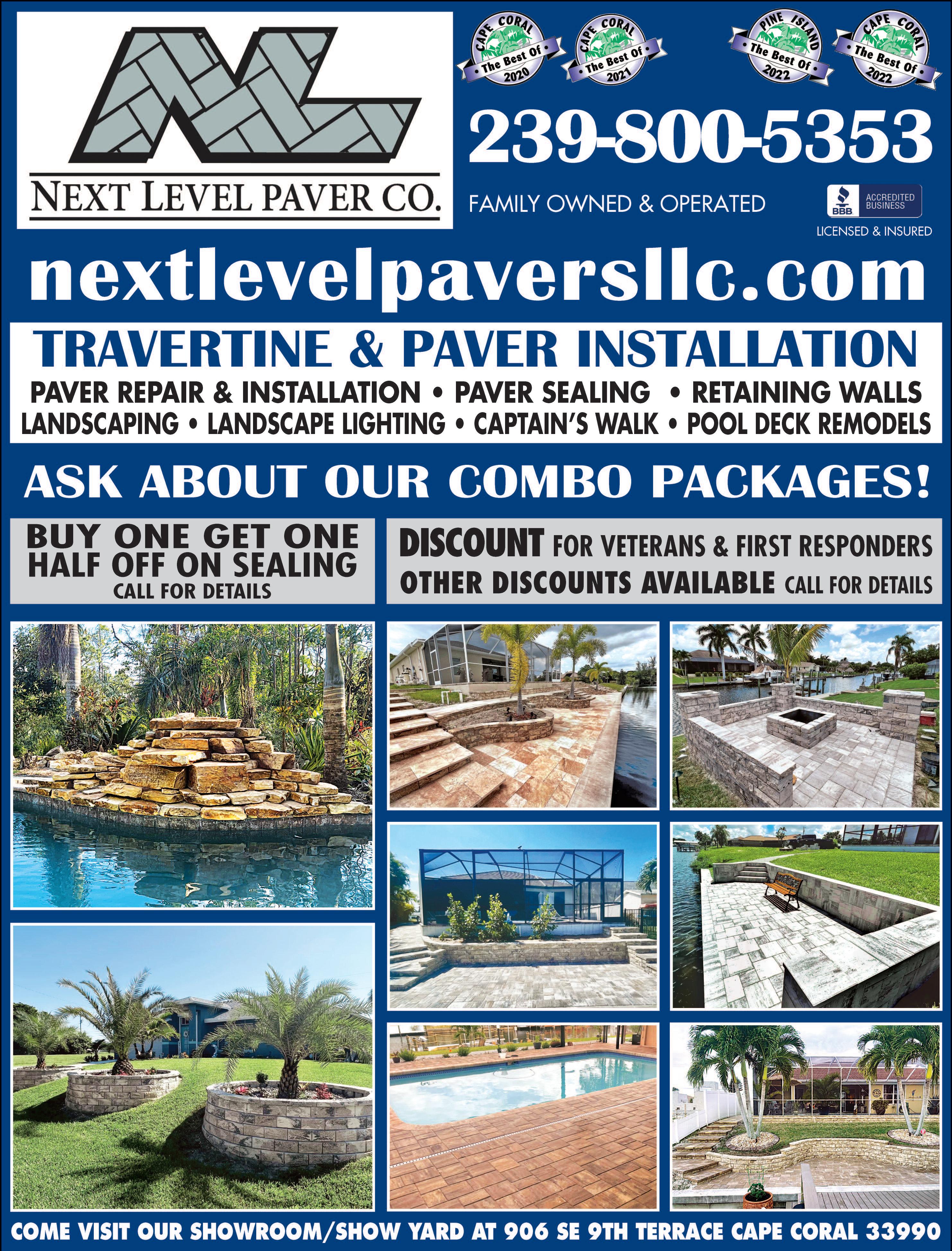 Residential/Commercial Pavers-PoolDecks Driveways-Roofs Cleaned&Sealed 10%OFFWITHTHISAD F REEESTIMATES 239-747-4638 Ifitainátsealed, Itainátprotected LICENSED/INSURED AFFORDABLE FREE ESTIMATES $1,800.00FourZones NewInstallation IncludesPermit 2YearWarranty A+RATED-ANGIESLIST Installation&Repair FAMILYOWNEDSINCE1981 LEE#LSO200031 CAPE#06938