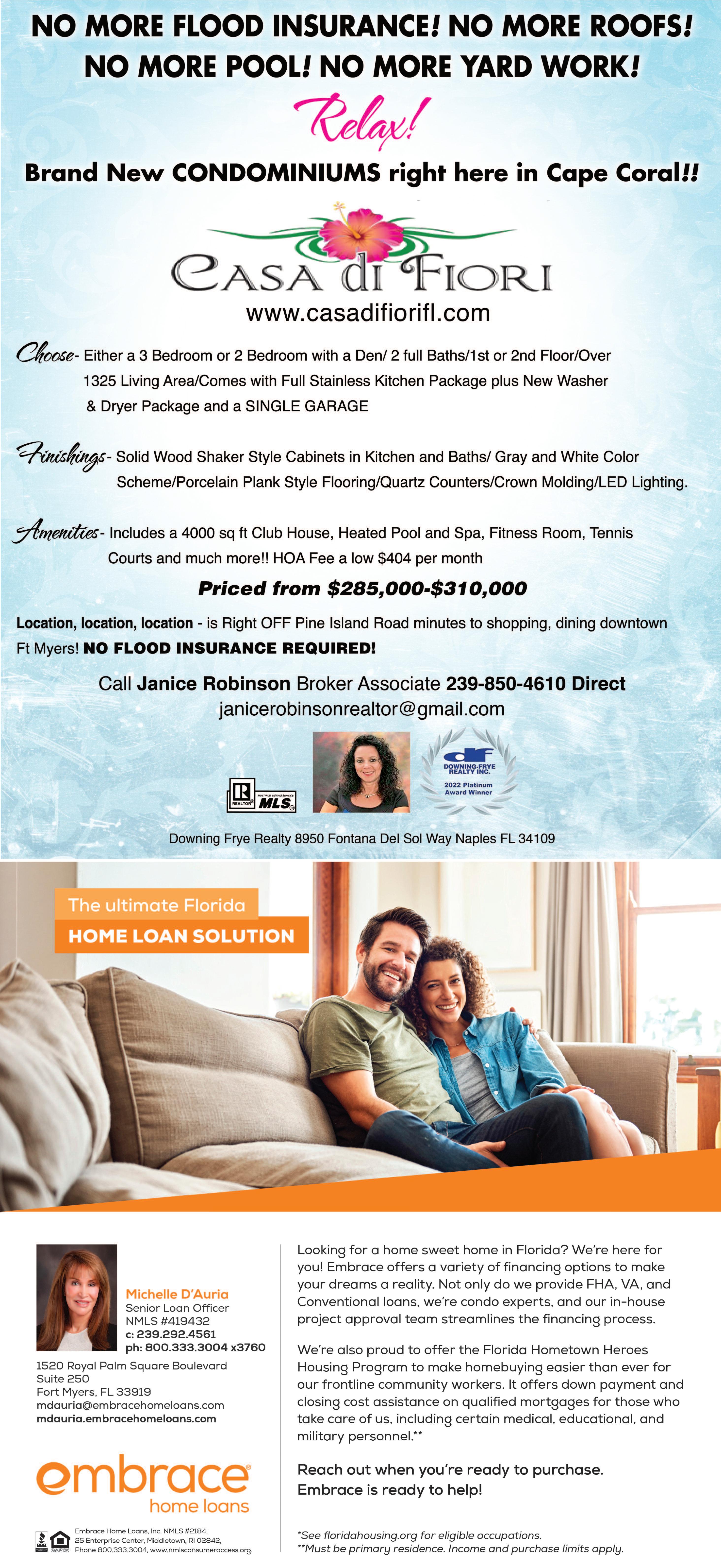 Page 5B CAPE CORAL BREE ZE w w w capecoral breeze com March 10 2023 liminary numbers The current median pending sales price is at $405,999 for homes under contract with buyers with most of these homes expected to have their sales finalized within the next 30 to 45 days We would tend to read these lower pending sales prices and closed sales price values versus the higher median list price value as a sign of continued downward pressure on home prices We would also acknowledge that some of the decline in pending and closed home sales prices can be attributed to the lowerpriced sales of storm damaged homes Of the current 1 380 active listings 491 of them are priced at $450 000 and under equalling 35 6% of the homes listed for sale with a Realtor, including 23 homes priced below $300,000 While a total of 185 of the 1,380 active home listings in the Cape are priced at $1 million and above There are currently 866 homes under contract as pending sales with 556 of these pending sales priced at $450,000 and u n d e r , i n c l u d i n g 3 3 h o m e s u n d e r $300,000 A total of 48 homes were under contract for $1 million and above T h e s a l e s d a t a f o r t h i s a r t i c l e w a s o b t a i n e d f r o m t h e F l o r i d a R e a l t o r s M u l t i p l e L i s t i n g S e r v i c e M a t r i x f o r L e e C o u n t y , F l a , a s o f M a r c h 7 , 2 0 2 3 , u n l e s s o t h e r w i s e n o t e d I t w a s c o m p i l e d b y B o b a n d G e r i Q u i n n a n d i t i