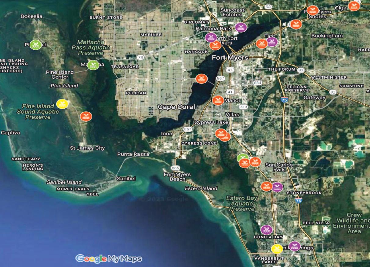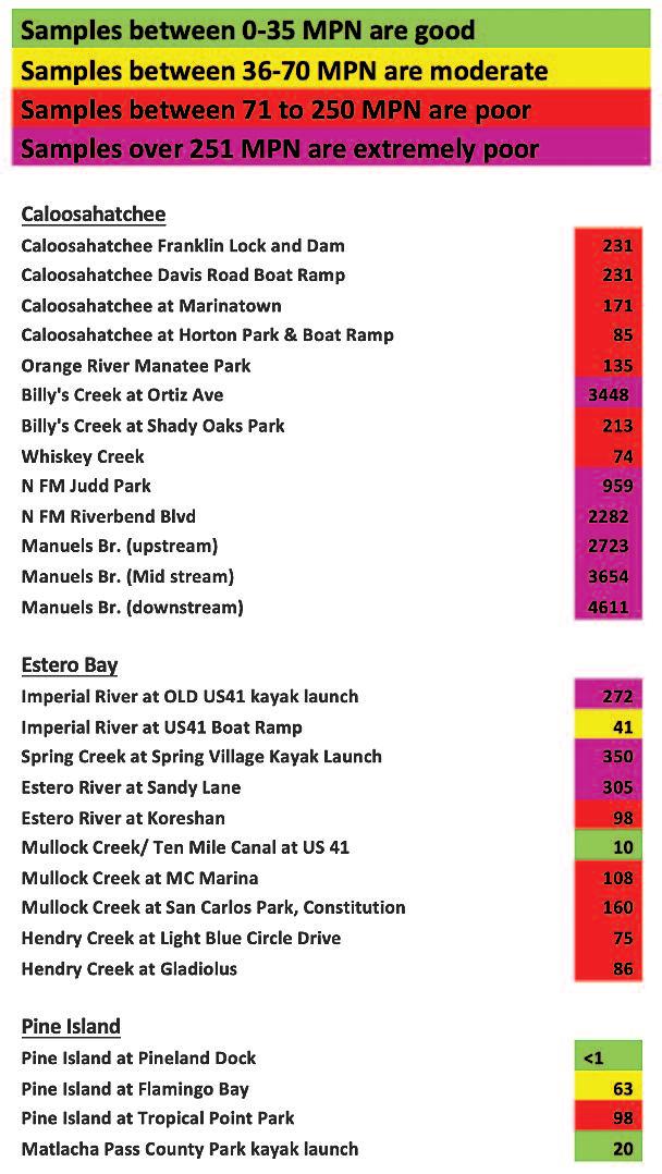 On July 11, the Florida Department of Health in Lee County issued a health alert for the presence of harmful blue-green algal toxins in the Caloosahatchee RiverHorton Park and McGregor Colonial Park It was in response to water samples taken on July 13 The public should exercise caution in and around the identified areas It advised the public to take the following precautions: