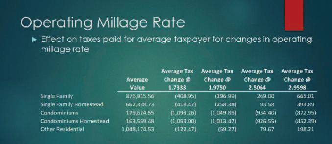 On July 18, the council voted 5-0 on a resolution to advise the Lee County property appraiser of the proposed millage rate, along with a rolled-back rate of 1 7333 mills and a proposed aggregate millage rate of 3 1527 mills It included millages levied of 0.0624 mills for the sewer voted debt service and 0 1305 mills for the recreation center voted debt service Exclusive of the voted debt service levies, the proposed aggregate taxes levied are approximately $11,858,195