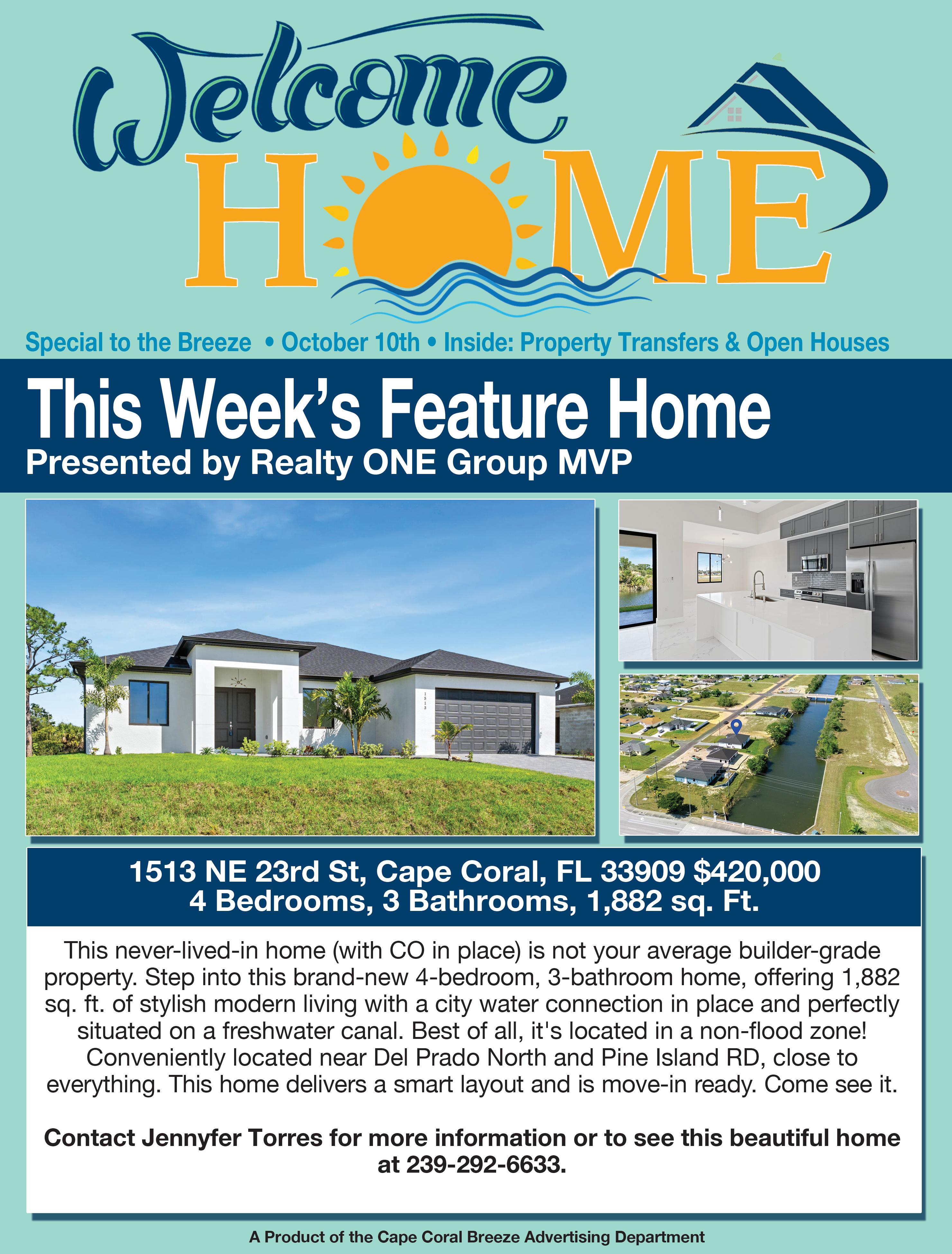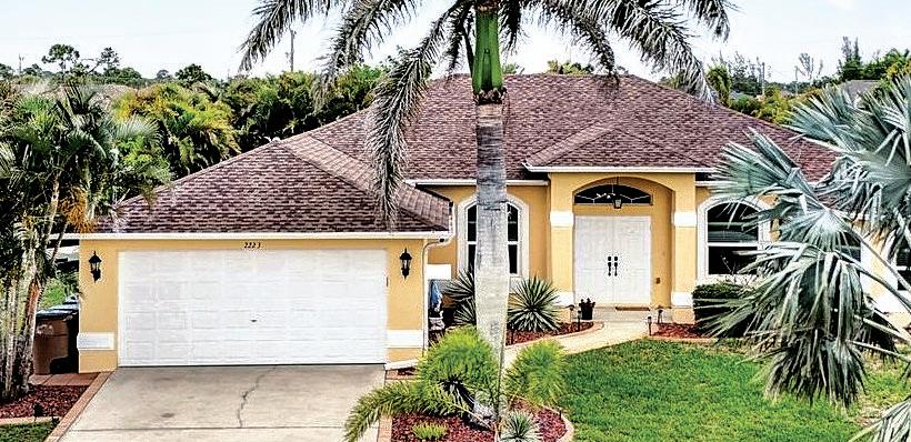 This stunning, newly built 4-bedroom, 2-bathroom home with a 3-car garage is perfectly located in the heart of Cape Coral. Designed with an open, airy oor plan, the home is lled with natural light streaming through its expansive windows, creating a warm and inviting atmosphere. The spacious living area is ideal for relaxing, entertaining, and hosting gatherings, while the modern kitchen boasts sleek appliances, granite countertops,