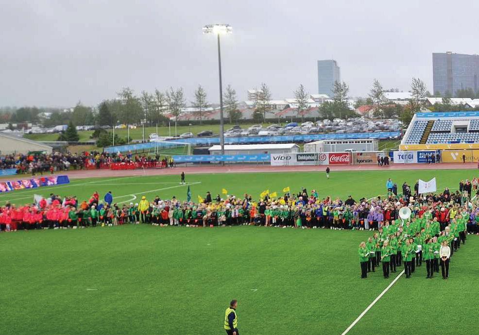 Setningarathöfn Símamótsins 2024. Skólahljómsveit Kópavogs fór fyrir skrúðgöngunni.