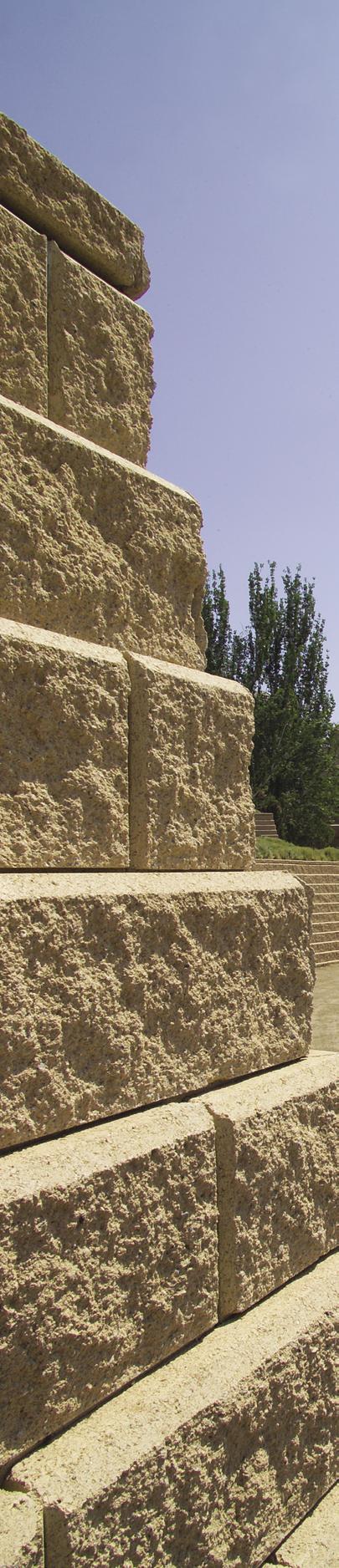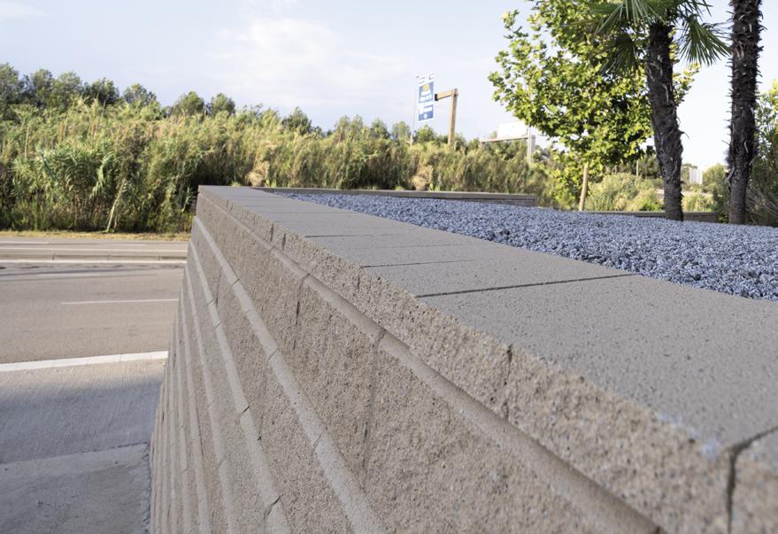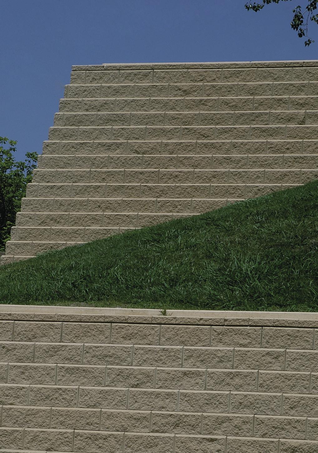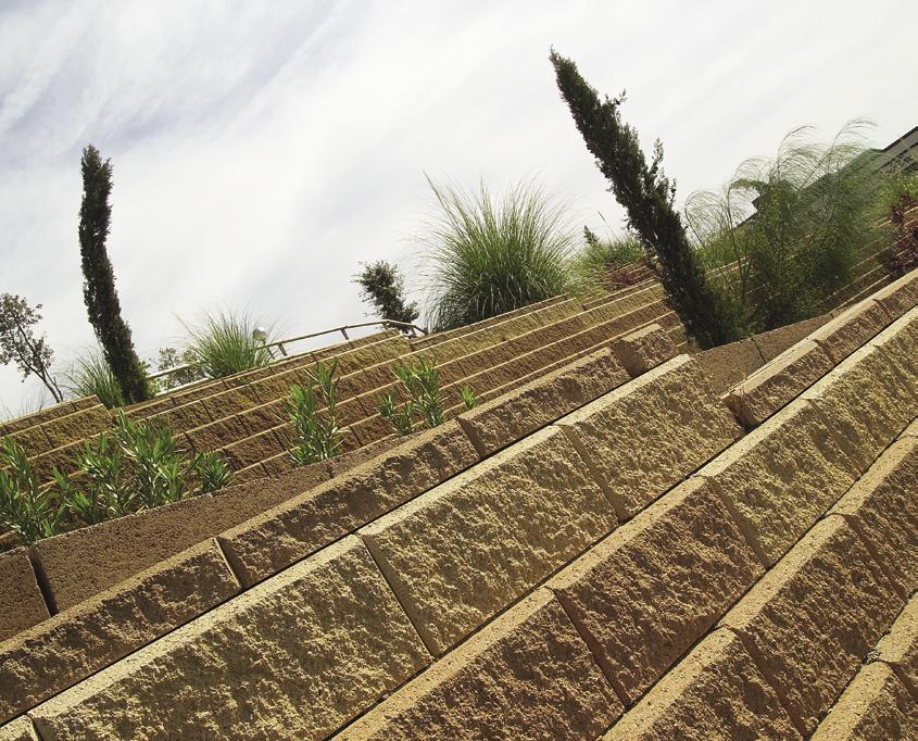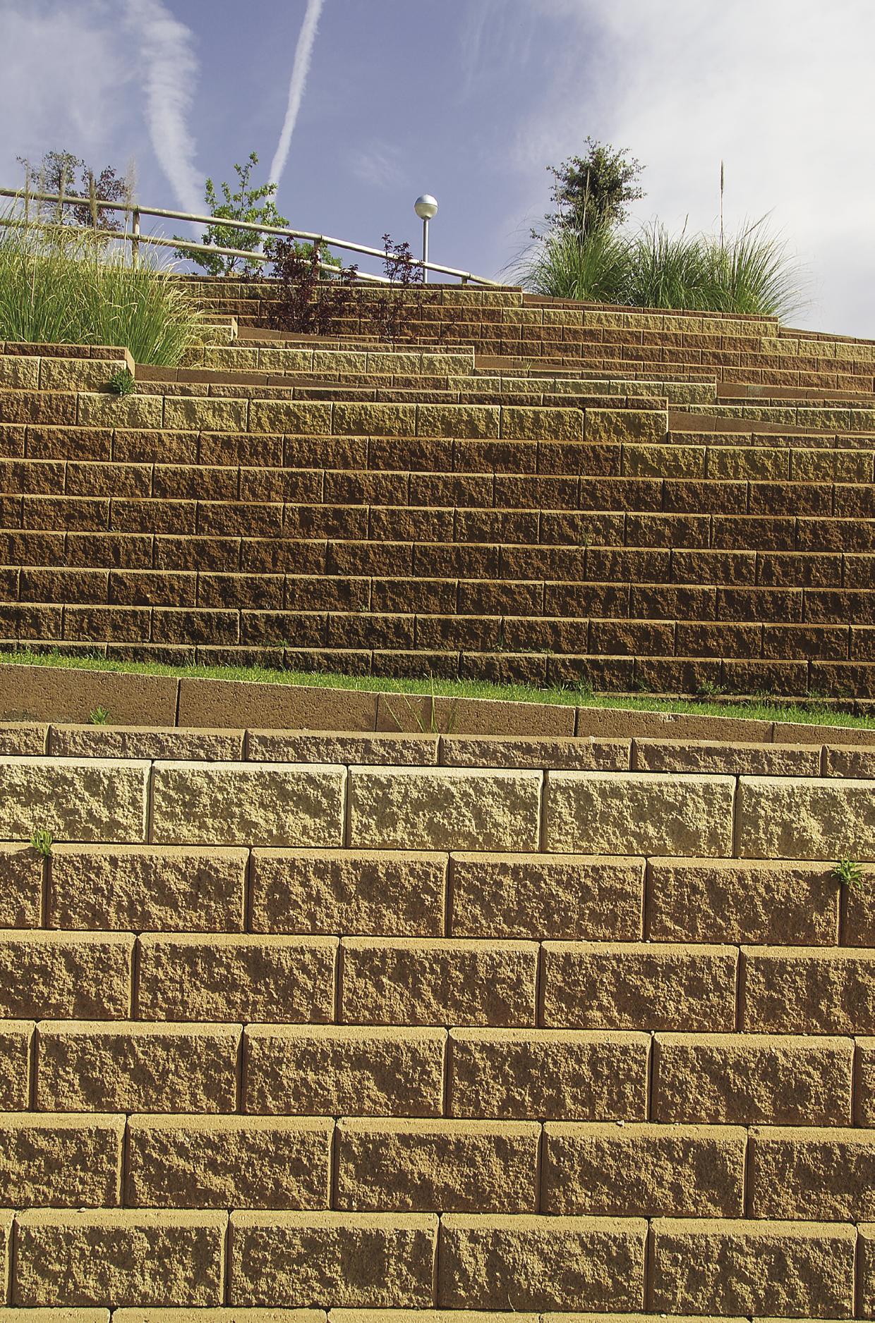 El carácter modular de estos muros permite ilimitadas opciones de diseño que pueden aplicarse a casi cualquier desnivel de terreno. Recientemente se han efectuado pruebas que han demostrado que los muros modulares también funcionan en zonas de actividad sísmica. La variedad de colores, texturas y su cara vista irregular nos permite crear nuevos paisajes estructurales y estéticamente agradables.”
