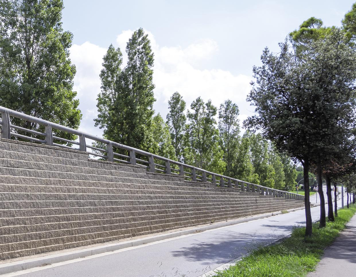 We will use a gravity wall for low wall projects and for larger projects we will use walls with geogrid reinforcement. The great capacity for wall adaptation to the natural environment provides with great design possibilities: straight lines, curves, corners or details for stairs.