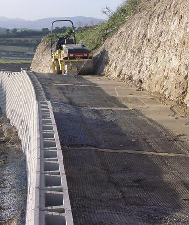 Aporta un drenaje apropiado. La geomalla cumple los requisitos ASTM D-4595 Proper drainage provided. Grid meets ASTM D-4595