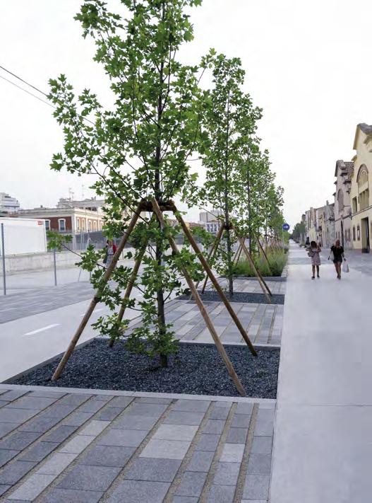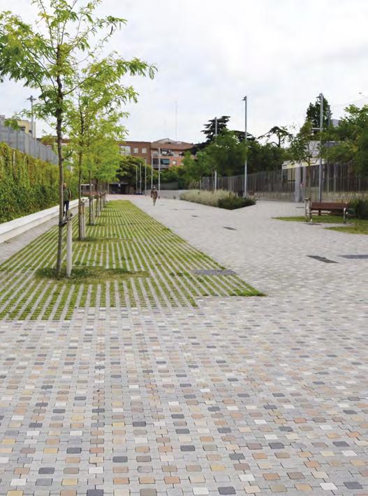 Desde hace 15 años potenciamos la pavimentación semiabierta permeable con junta verde que reduce el índice y la cantidad de escorrentías de la superficie e introduce un microclima más frío en la superficie pavimentada.