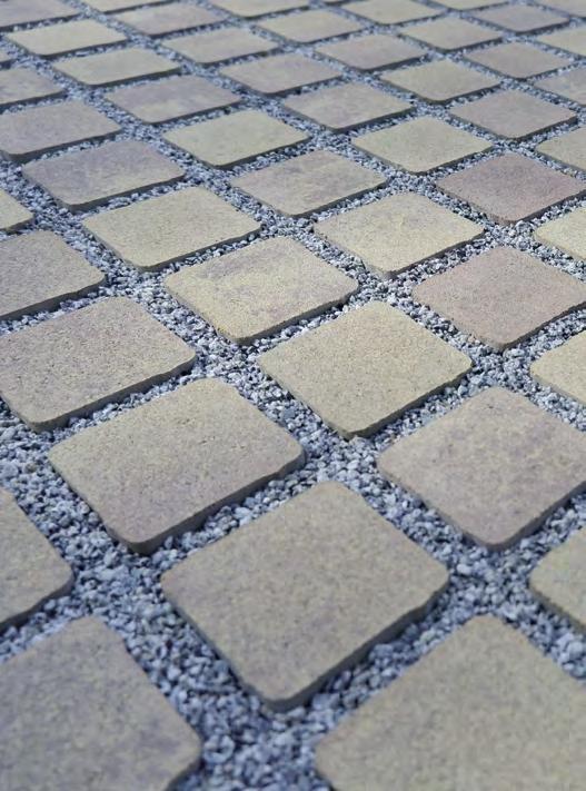 Las diferentes texturas y colores de los adoquines y de las losas permiten un diseño atractivo del pavimento y representan un reto para la tecnología de la protección.