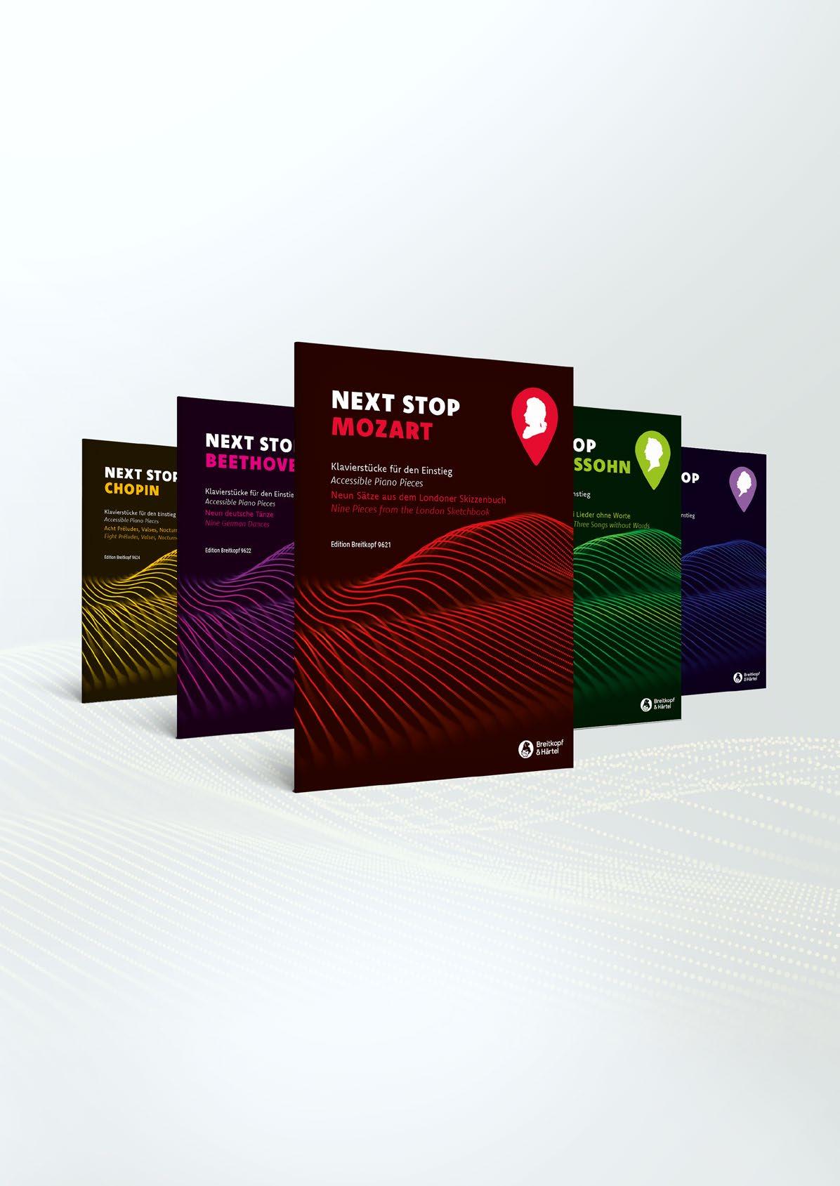 Noch mehr Bach auf Einsteigerniveau bieten die ersten zwei Hefte der Reihe Next Stop, die jedem ambitionierten Tastenkünstler eine erste Annäherung an die großen Namen wie Mozart, Beethoven und Chopin und ihre berühmten Stücke eröffnet. Weitere Hefte zu insgesamt sechs Komponisten werden in dichter zeitlicher Folge erscheinen.