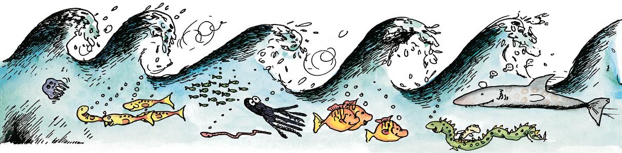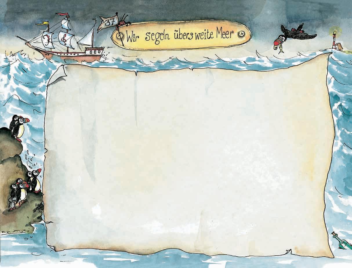 4. Wir segeln übers weite Meer, hula…, hula…, und schaukeln hin und schaukeln her, hula…