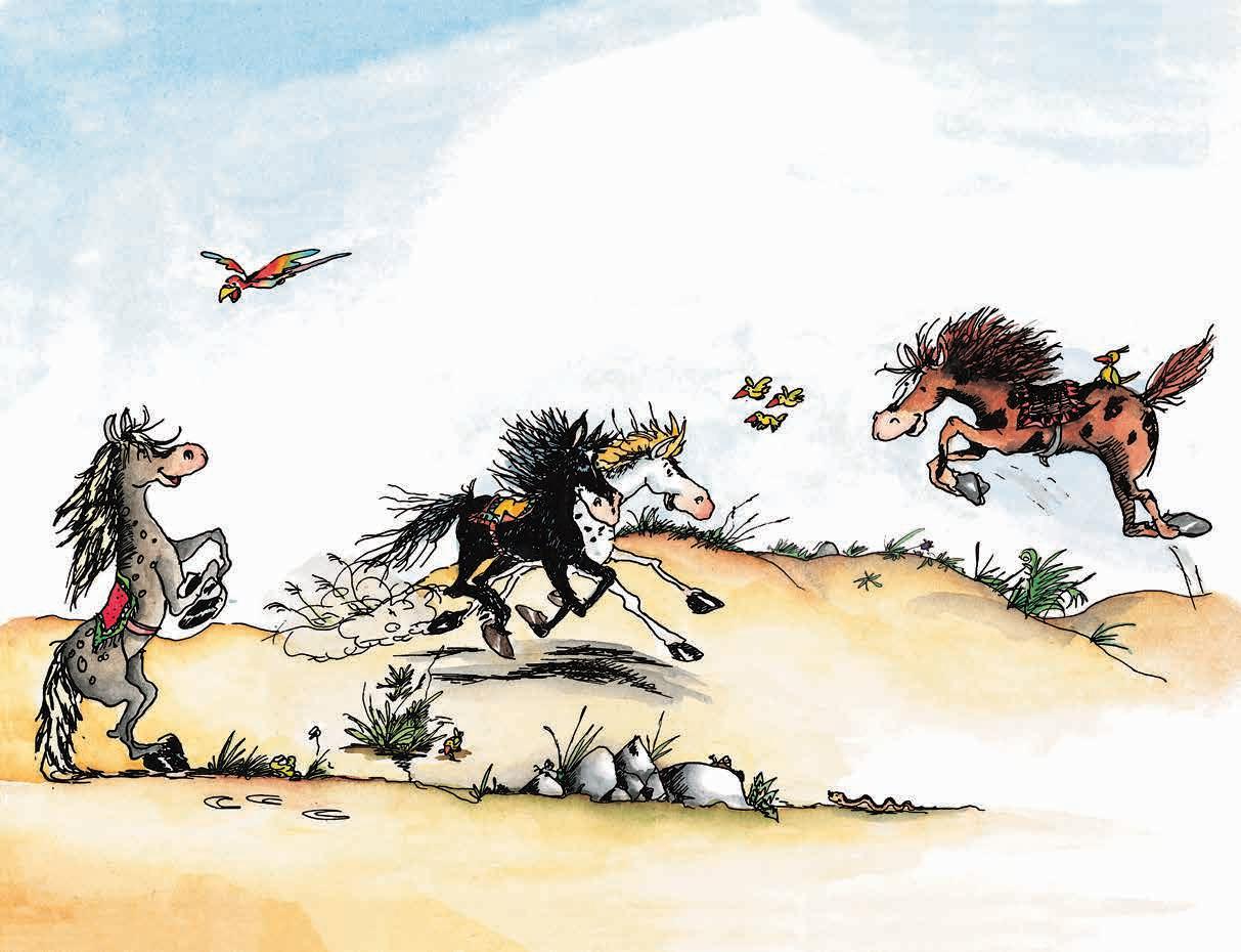 Beim Tanz der wilden Pferde spielen beide Hände in der d-Lage. Wie heißt jetzt der höchste Ton in der rechten Hand? Für die folgenden drei Stücke verschieben sich deine Hände jeweils um einen weiteren Ton nach oben. Wie heißt jeweils der neue höchste Ton? Ergänze die neuen Noten auf S. 20.