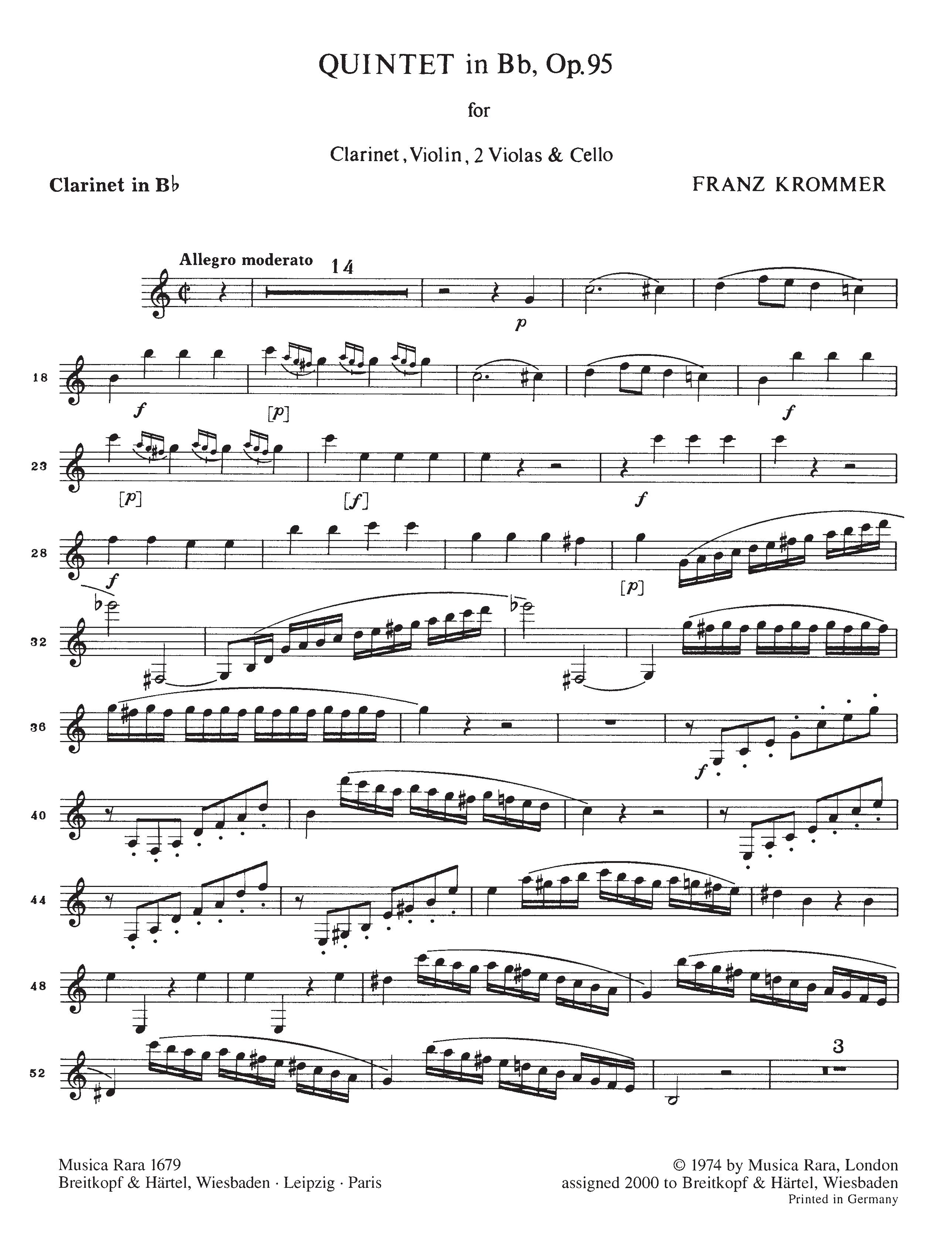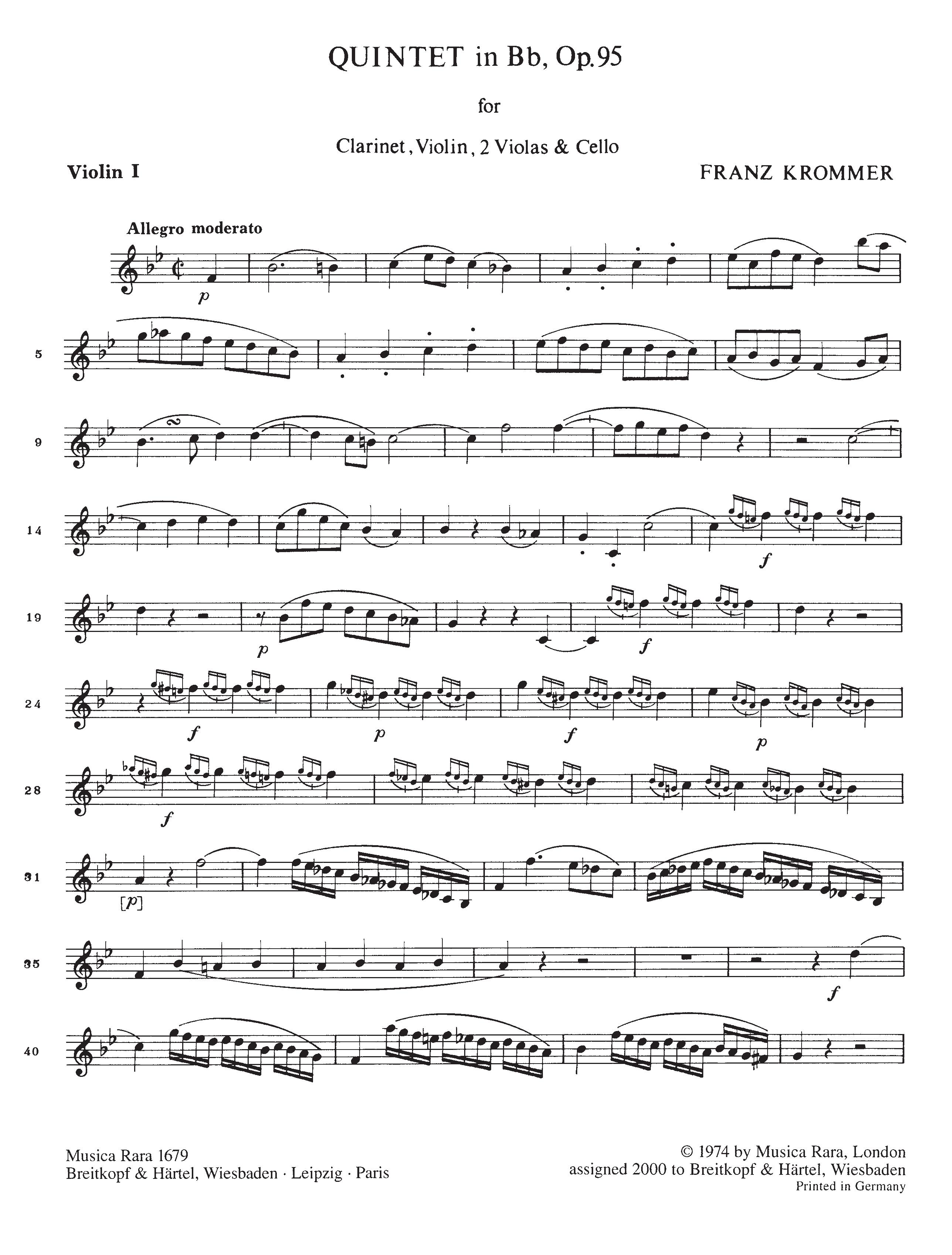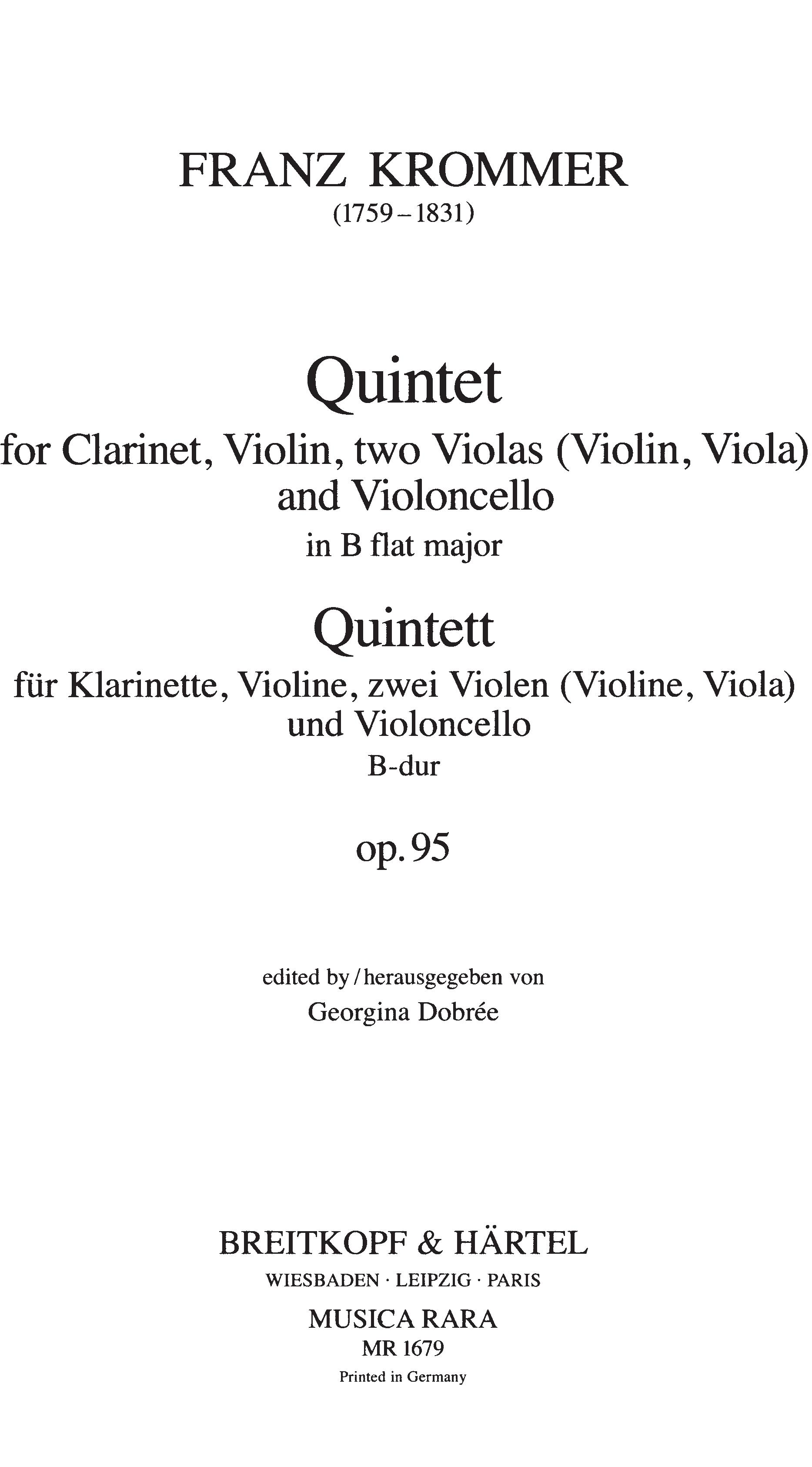 for Clarinet, Violin, 2 Violas (Violin, Viola) and Violoncello in B flat major op. 95