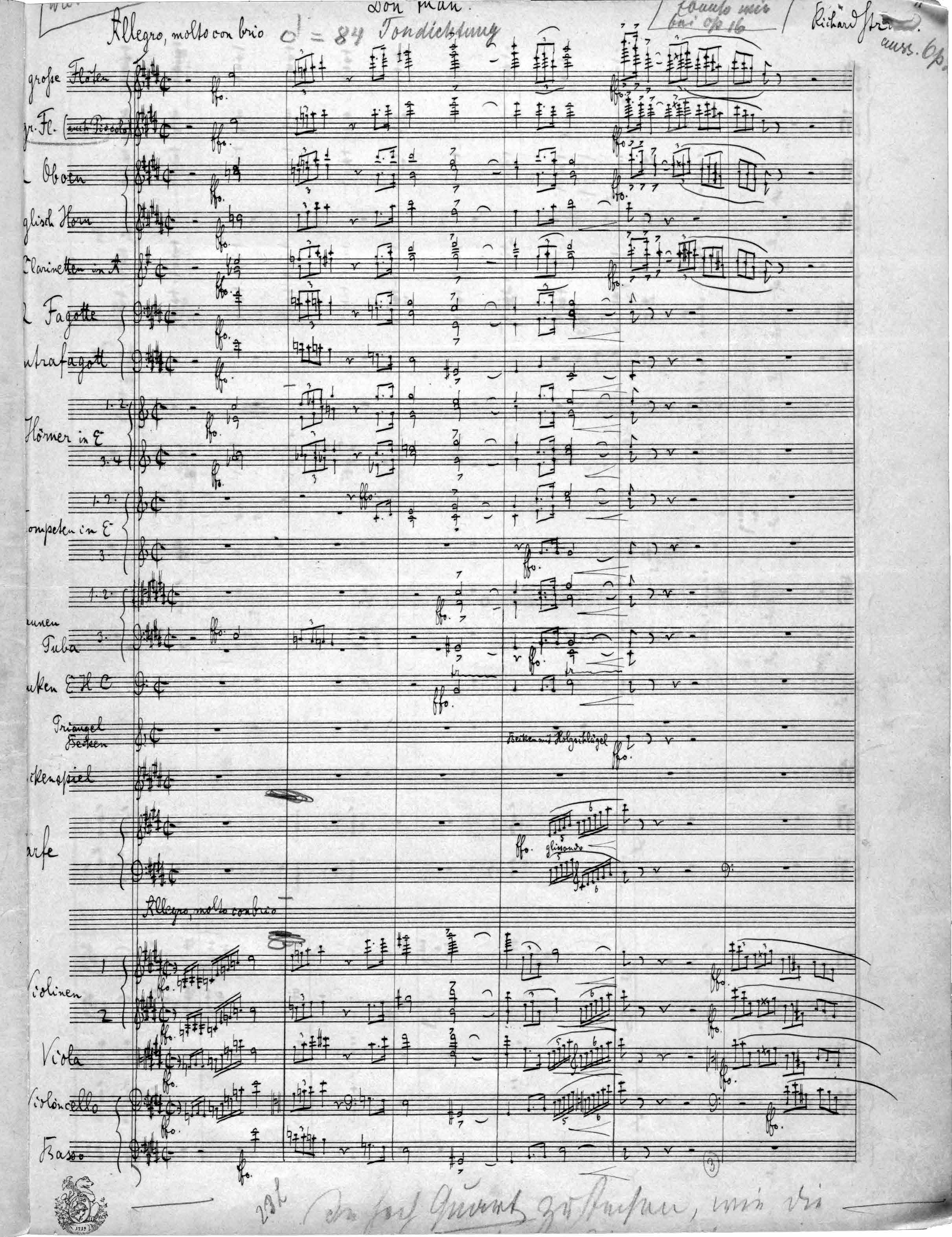 28 Letter to Viorica Ursuleac (29 October 1944): “[…] and in my boredom I made another manuscript score for the Eulenspiegel, which Don Juan and Tod und Verklärung are still supposed to follow, which I at that time carelessly left to the publisher, who sold alone the Don Juan manuscript to Switzerland for 12000 frcs., whereas I received a one-time honorarium of 800 marks for it. So at least I want to bequeath the manuscripts to my grandchildren.” See Götz Klaus Kende and Willi Schuh (eds.) Richard Strauss – Clemens Krauss Briefwechsel, Munich, 1963.