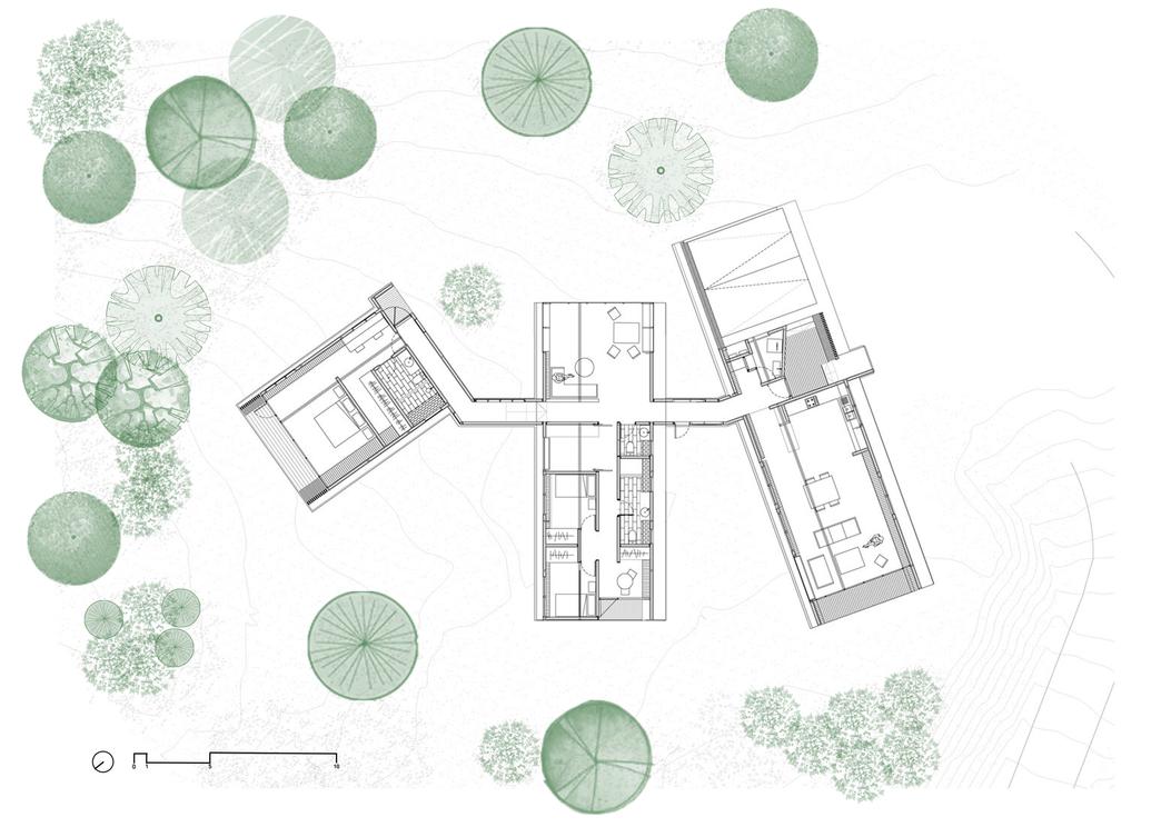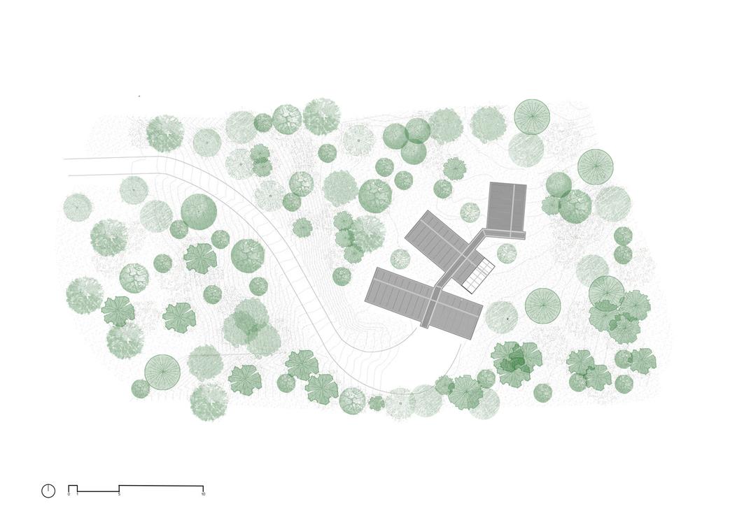 El sitio se encuentra en tres estrechas franjas de tierra que se abren a las vistas del agua, tanto en su parte delantera y trasera, provocando nuestros sentidos hacia la montaña, el agua, el cielo y el campo Distintas situaciones de relieve hacen posible dar forma a diversas experiencias lineales en el paisaje.