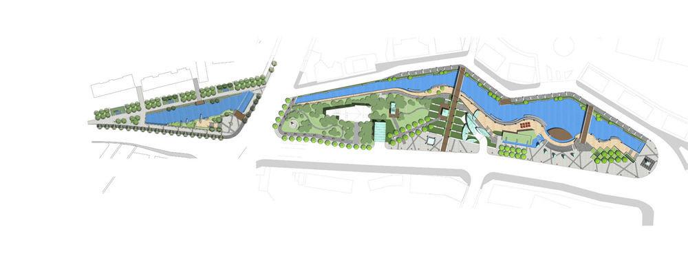 Líneas curvilíneas, plantas nativas y materiales mixtos que representan los cinco elementos se combinan para crear un espacio que es un reflejo de la cultura Jiyang La historia y la vida abundan aquí, con referencias arquitectónicas a dinastías antiguas y culturas que están destinados para recordar el día de la ciudad moderna del pasado que construyó el puerto y todo lo que lo rodea