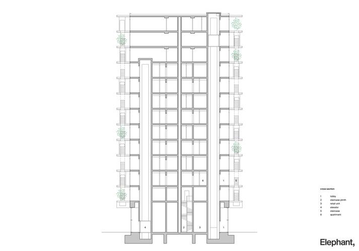 Westerpark West, en Ámsterdam Elephant ha dado un giro a la vida de la ciudad y ha cambiado la clásica torre residencial para siempre as escaleras se colocan fuera de las terrazas y se convierten en parte de la arquitectura El antiguo núcleo de circulación de hormigón se remodela para destinarlo a baños, almacenamiento y espacios técnicos. De ahí que hayamos llamado a este nuevo concepto de circulación Coreless y que ahora se utilice también en las nuevas torres residenciales.