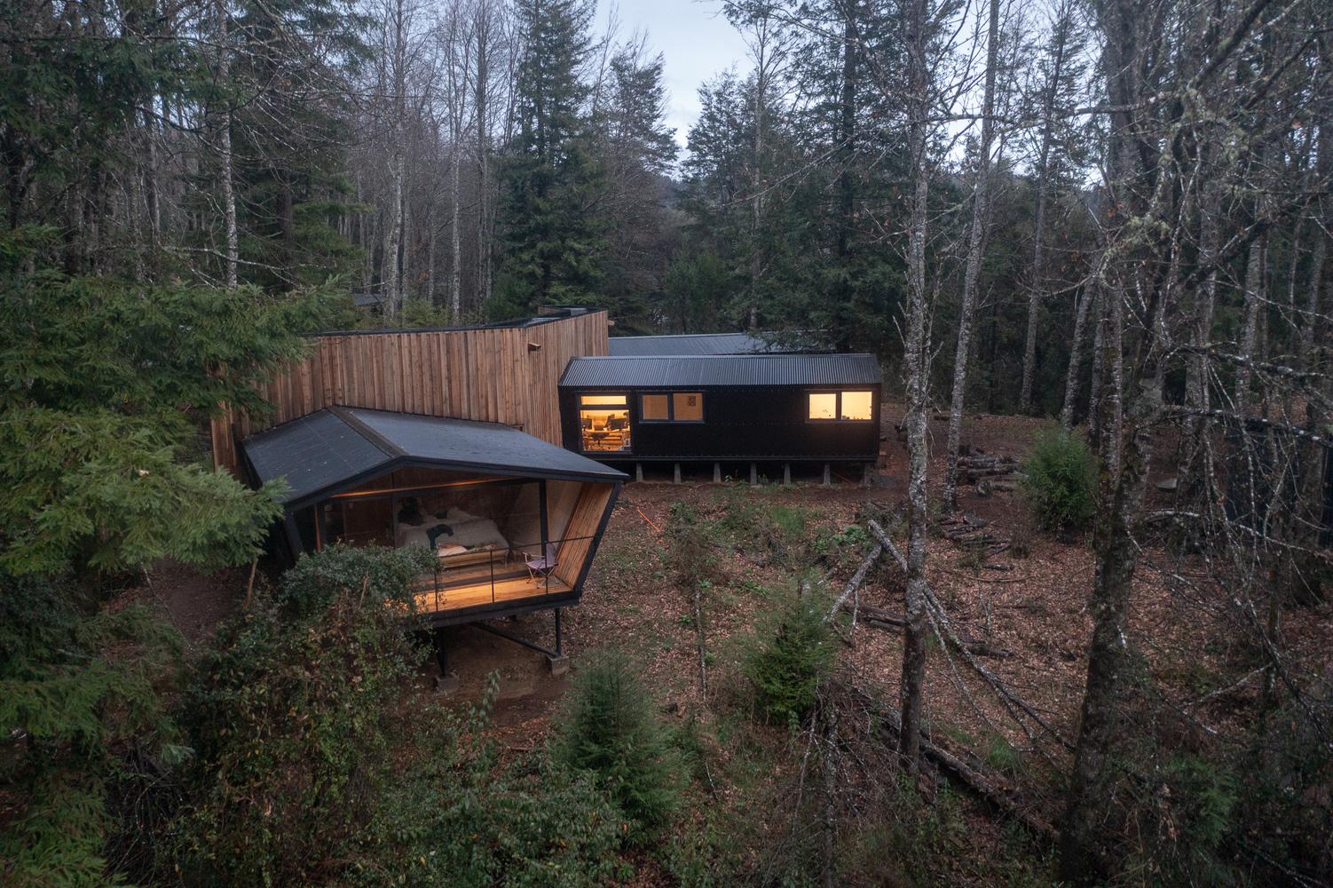 Casa RH (corredor + módulo) se emplaza sobre un terreno ubicado kilómetros antes del ingreso a la ciudad de Valdivia, específicamente en un cerro de la rivera norte del río Calle calle El sitio es de cinco mil metros cuadrados y se encuentra insertado dentro un bosque de especies nativas e introducidas.