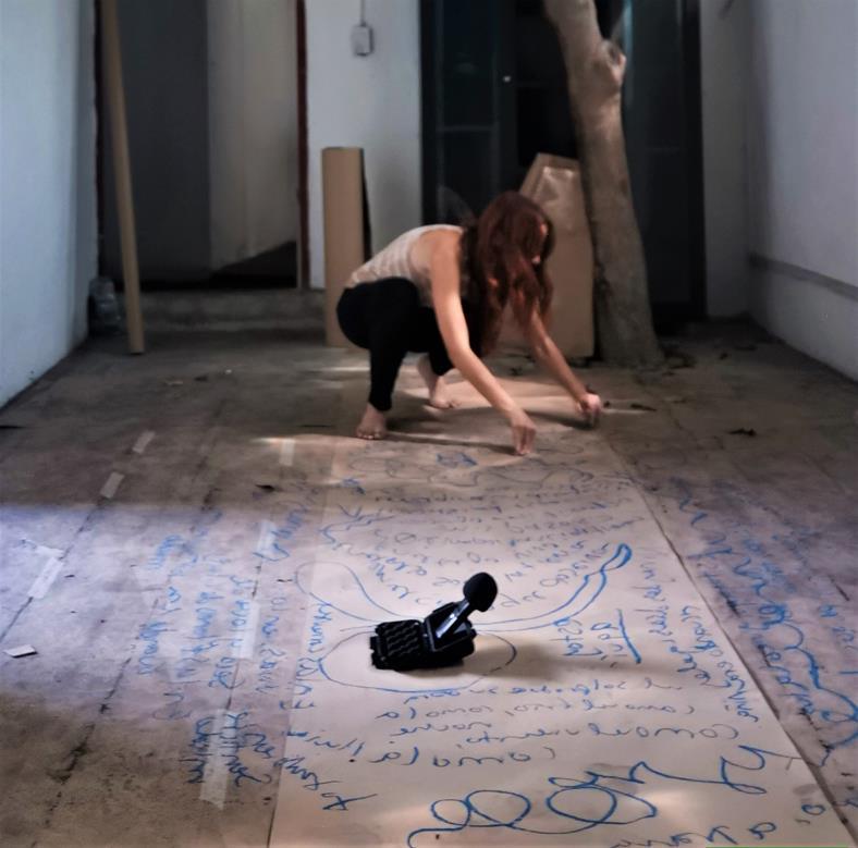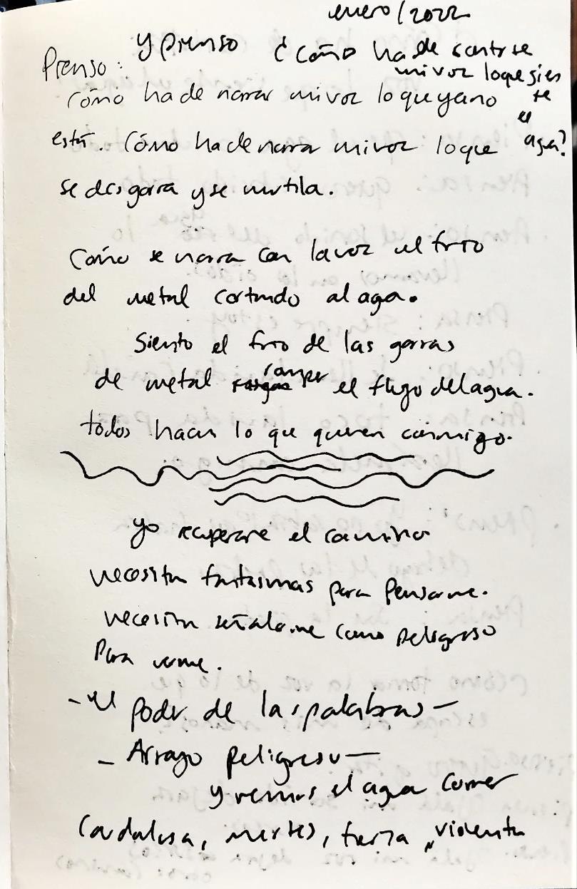 Pienso en un dibujo que no es atrapado y que se escurre y expande como el agua. Pienso en la materialidad de mi voz.