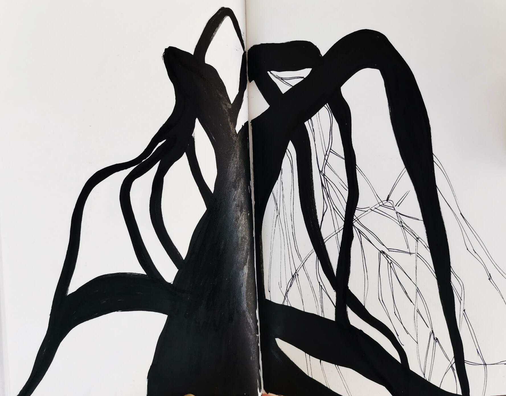 EL dibujo es lo violento en mi/es la línea que continua en la cabeza/ Es pensamiento/es el día silencioso/