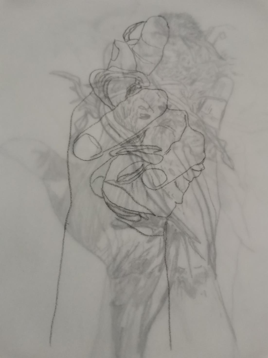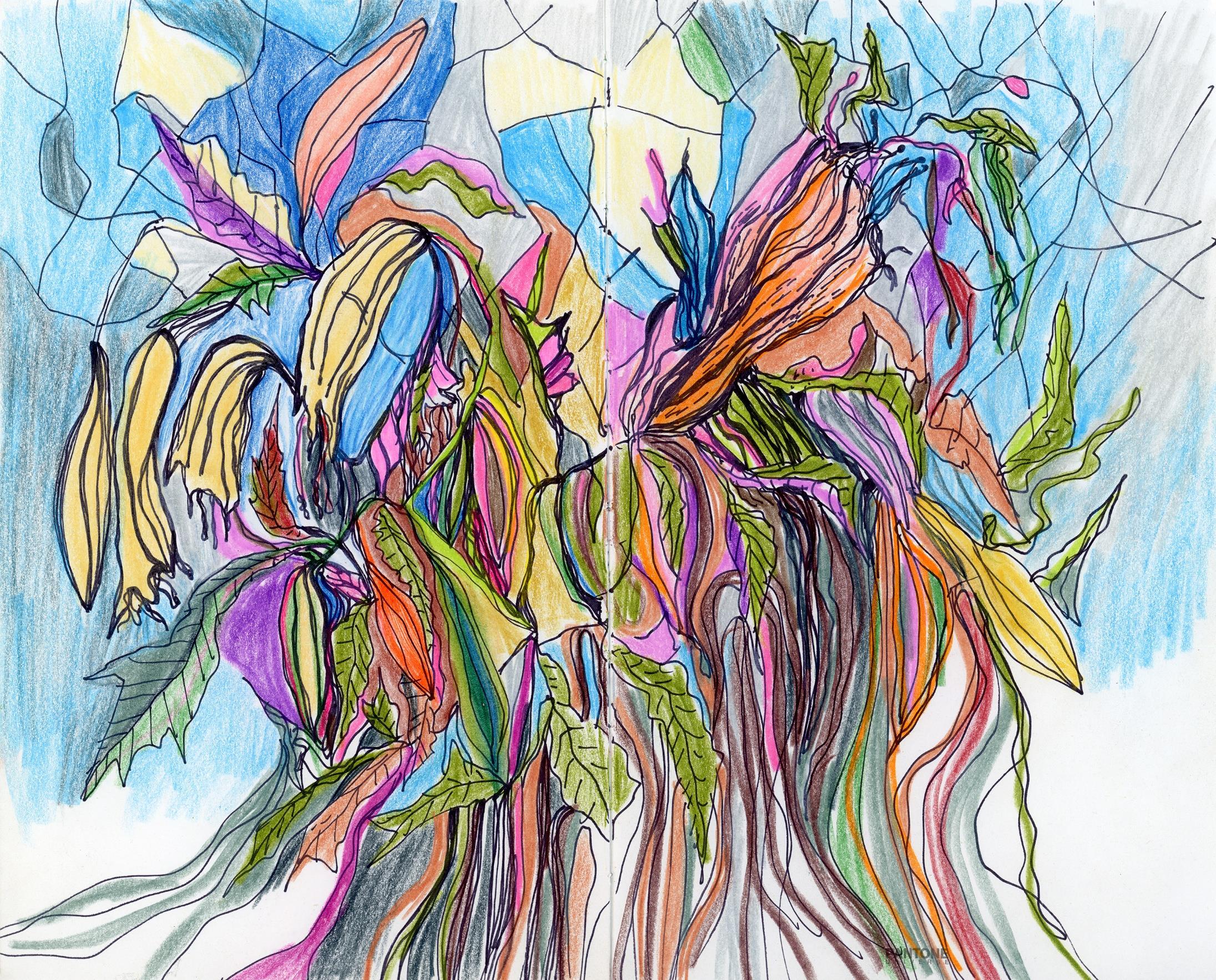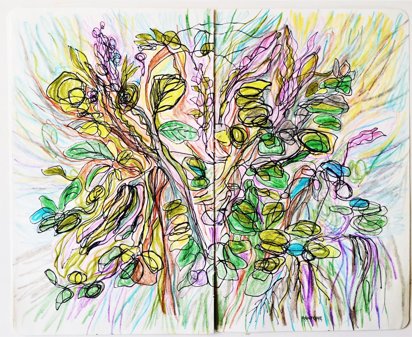 El dibujo es crecimiento/ Es la lluvia y la tormenta/ lo verde y lo gris Lo rosa lo naranja El cielo