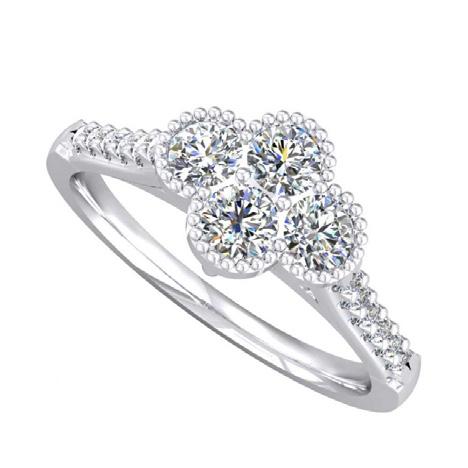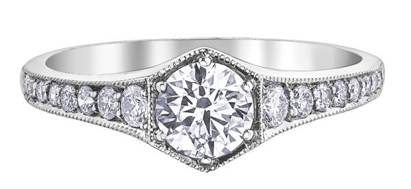 From the round brilliant cut diamonds to the millgrain edging, this ring from Drakes twinkles with timeless beauty.