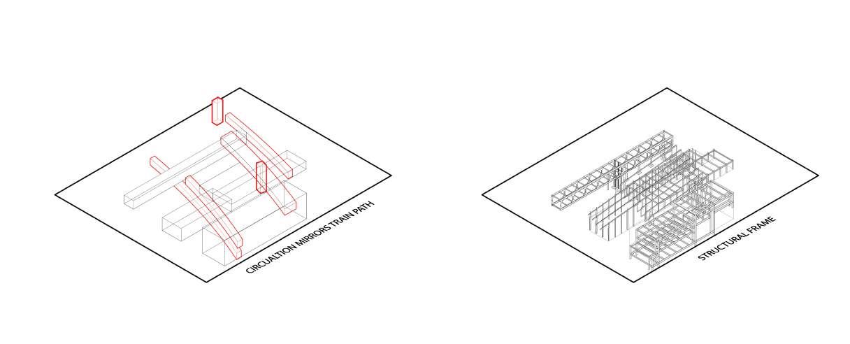 1. ALIGN WITH OTHER MASSES 2. CONNECT MAIN SITE LINES 3. CREATE MASSES 4. PLAY WITH GEOMETRY TO CREATE CONNECTION AND DYNAMIC FORM