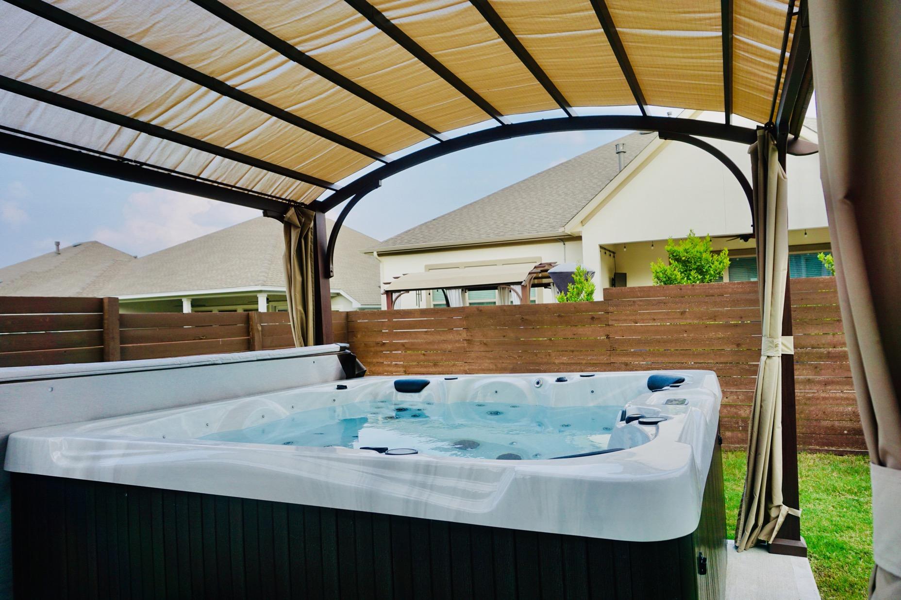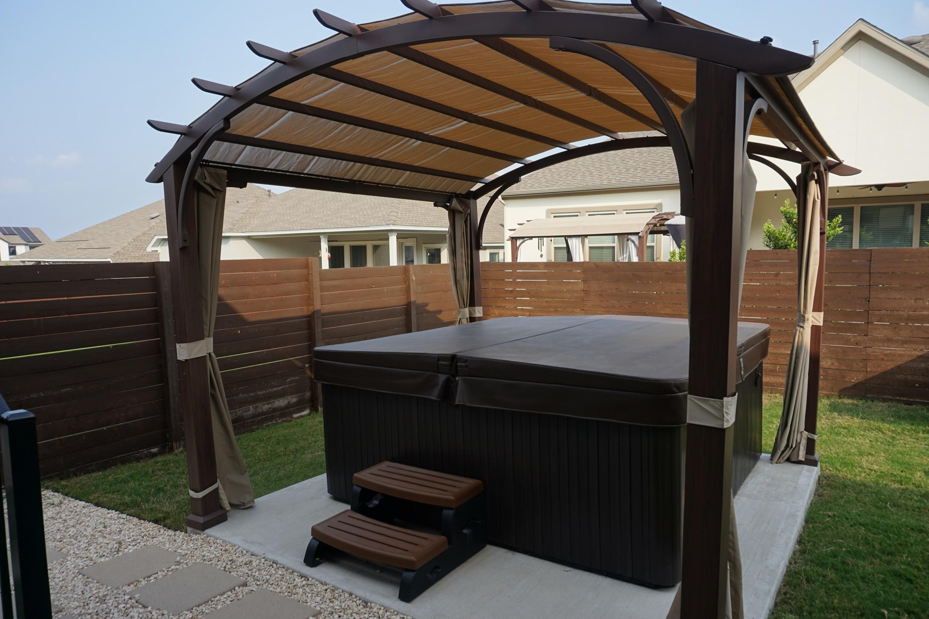 Hottub(2021)withcoverandgazebo(sitsonaconcretefoundation)