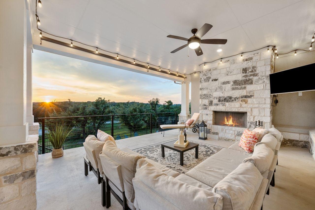 Remarks: Hill Country Views, Stunning Sunsets, and Luxurious Living can be yours in this spacious home that is less than two years old! Spend your evenings watching the most beautiful sunsets from the elevated outdoor living area and cozy up to the stone fireplace on chilly evenings. The outdoor kitchen offers a high-end Blaze grill and griddle, an outdoor refrigerator, and everything you need for a perfect outdoor cooking experience. Imagine not only grilling but also cooking up smash burgers, stir-fry, and weekend brunch on the griddle! This home is BEAUTIFUL! The extensive upgrades (list attached) are evident as you walk through the foyer and into this expansive, open-concept home that is every entertainer’s dream! An impressive center island with waterfall-edge quartz countertops anchors the gourmet kitchen. GE Café appliances feature a gas cooktop, a Smart oven (yes, it has an air fryer feature and will cook your Thanksgiving turkey for you!), and an Advantium microwave that will make day-old pizza taste fresh out of the oven! Farmhouse sink, cabinets to the ceiling, and numerous other kitchen upgrades abound. The first floor features a front bedroom, full bath, and private office. The huge owner’s retreat features a spacious bathroom with a super shower, art deco tile, and a spacious walk-in closet. Upstairs you will find a bonus room with amazing views, a large ensuite bedroom with a private bathroom and walk-in closet, plus two additional bedrooms and a fourth bathroom! With a premier neighborhood location, the home is just down the street from the pool! Provence is located within the highly coveted Lake Travis ISD, with convenient/easy access to schools, shopping, and restaurants. The Hamilton Pool Road expansion will be complete in 2024, opening up this corridor to the Texas Wine Country with access to countless vineyards, breweries, distilleries, tasting rooms, and amazing outdoor adventures!