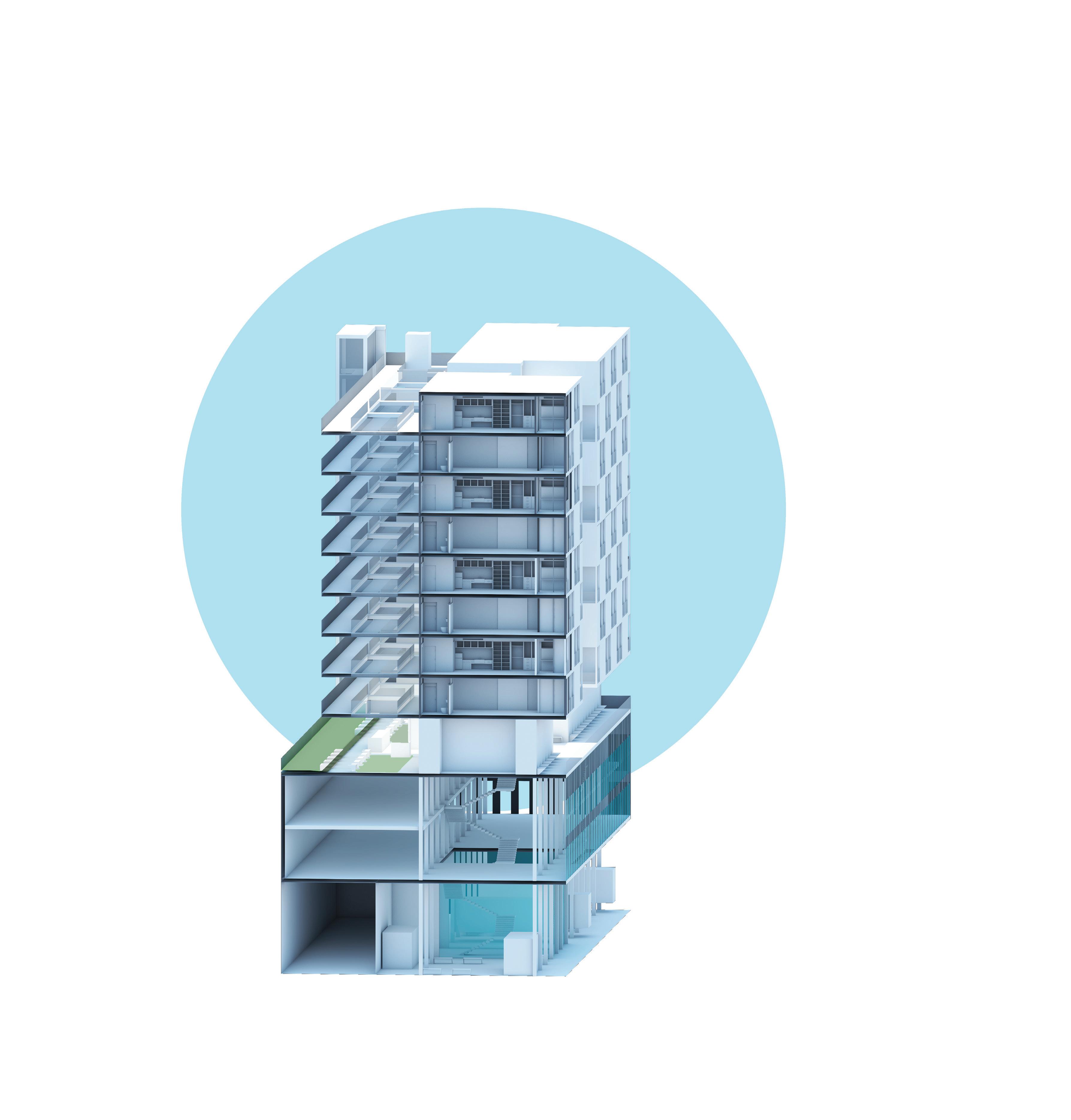 The assignment for this project was to design a ‘Wellness Center’ which would be located at the corner of Summer/Best St. and Main St. in downtown Buffalo, New York. This would include incorporating a fitness center, a health/medical center, and a market. Because its location sits on a divide between two very different communities and features a metro station, a large part of this project was centered around creating com munal space to bring together the neighborhood.