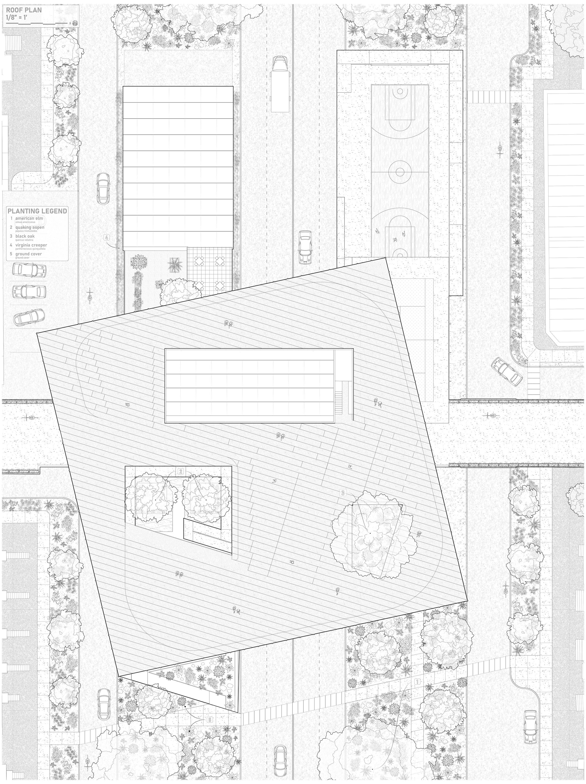In order to allow for multi-level interaction between the main boulevard and the 606, “the Wafer” was introduceda manuever intended to allow for transition between the ground, the 606, and upon the wafer itself, which is a ramped platform for accessible engagement. This new plane of occupance allows for a variety of views to the Humboldt Park communty, as well as the boulevard intersecting it below.