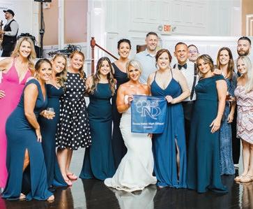 After COVID postponed their first attempt, Kara DeSalvo ’04 and Sam Milazzo finally tied the knot on August 8, 2021. ND alumni in attendance included Amanda Caputo ’04 DeRose (not pictured, Joe DeRose ’04), Stephanie Baciuska ’04 Silverman, Devon Humphries ’04 Abruzzee, Eleni Patounas ’04 Neel, Julie Brennfleck ’04 Gustafuson, David Nemeth ’03, Joseph Petitto ’04, Joseph Tykarsky ’04, Thomas Roberto ’04, Laura Harrington ’05 Roberto and Victoria DeSalvo ’07.