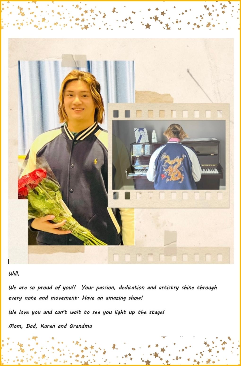 Will- We are so proud of you! You always do a great job in your performances!! Love, Grandma, Aunt Chris, Uncle Butch, Uncle Dave, Aunt Patti, Cousin Therea and Dave