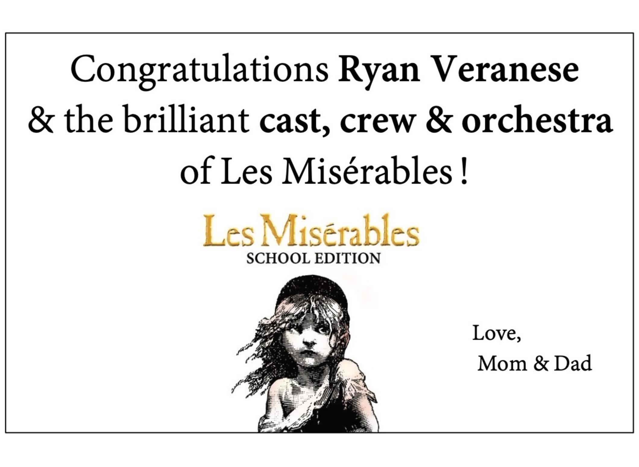 Congratulations Rebecca G.! Your talent will surely shine in Les Mis! Great things are ahead. Enjoy your senior year. Jill and Steve.