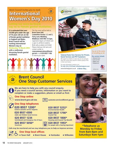 This free event will be held at: Brent Town Hall, Committee Rooms 1,2 and 3, Forty Lane, Wembley, Middlesex HA9 9HD 10-3pm, registration begins at 9.30am and is open to all Brent residents. Book early, as places are limited. Please email your full name and contact number to corpcommunications@brent. gov.uk or call 020 8937 1106 to reserve your space.