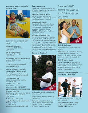 Exercise, have fun, get back into shape, improve your strength and meet new mothers. Willesden Sports Centre Wednesdays, 10.30 - 11.30am £2 per session Vale Farm Sports Centre Thursdays, 10.45 - 11.45am £2 per session