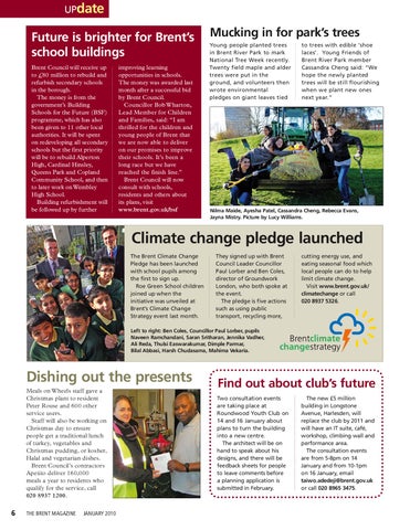cutting energy use, and eating seasonal food which local people can do to help limit climate change. Visit www.brent.gov.uk/ climatechange or call 020 8937 5326.