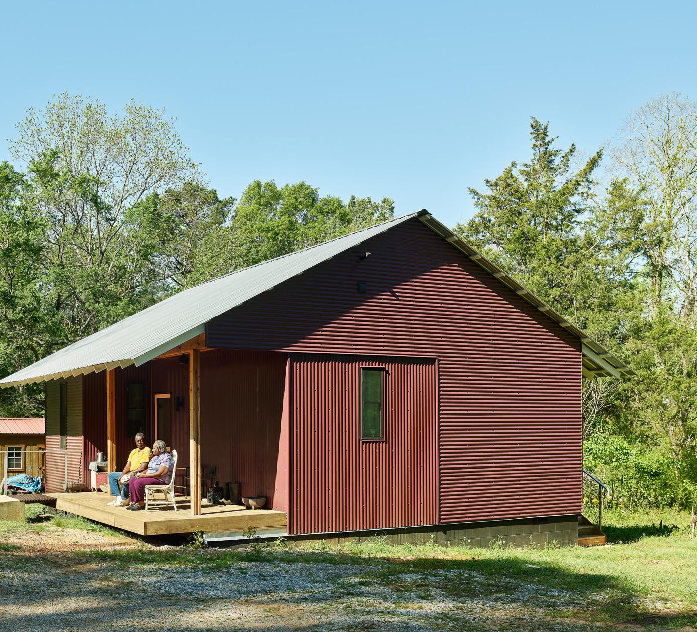 Continuing the 20K research project headed by Rural Studio, Ophelia’s Home is a studied iteration upon an existing product line home, currently used by the studio’s Front Porch Initiative. With the goal of seeking better solutions for affordable and dignified rural housing, the project’s focus was adapting the house to meet the needs of the client and achieve Fair Housing Act Standards of accessibility. The challenge was creating space for both