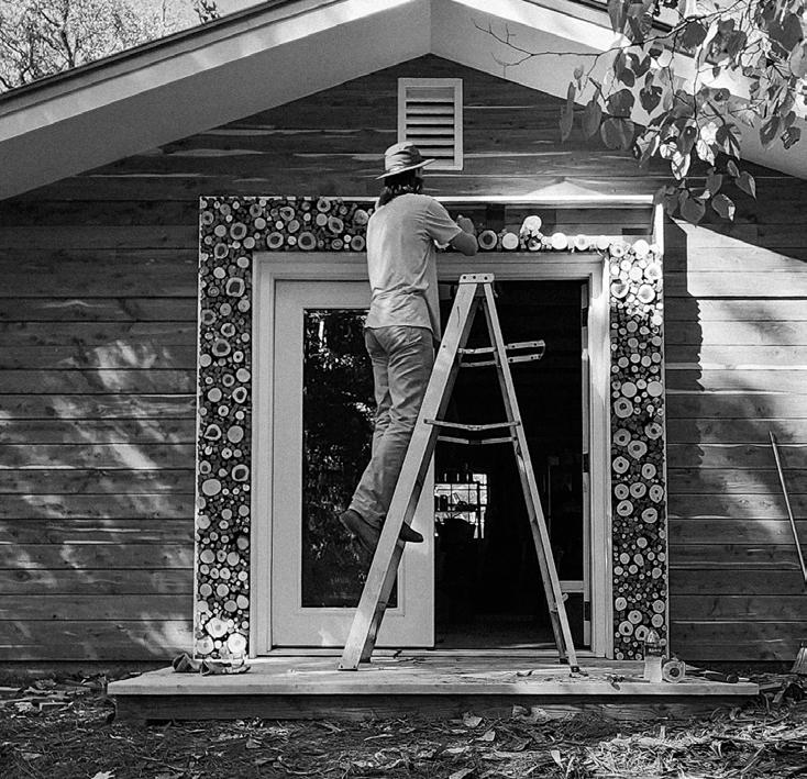 left the home and garage before renovation right Butch developed his own style of art, “inter-twangle-ism,” after years of weaving and collaging bones, sticks, license plates, and various objects of any sort. this served as inspiration for both the overall design and details for the project.