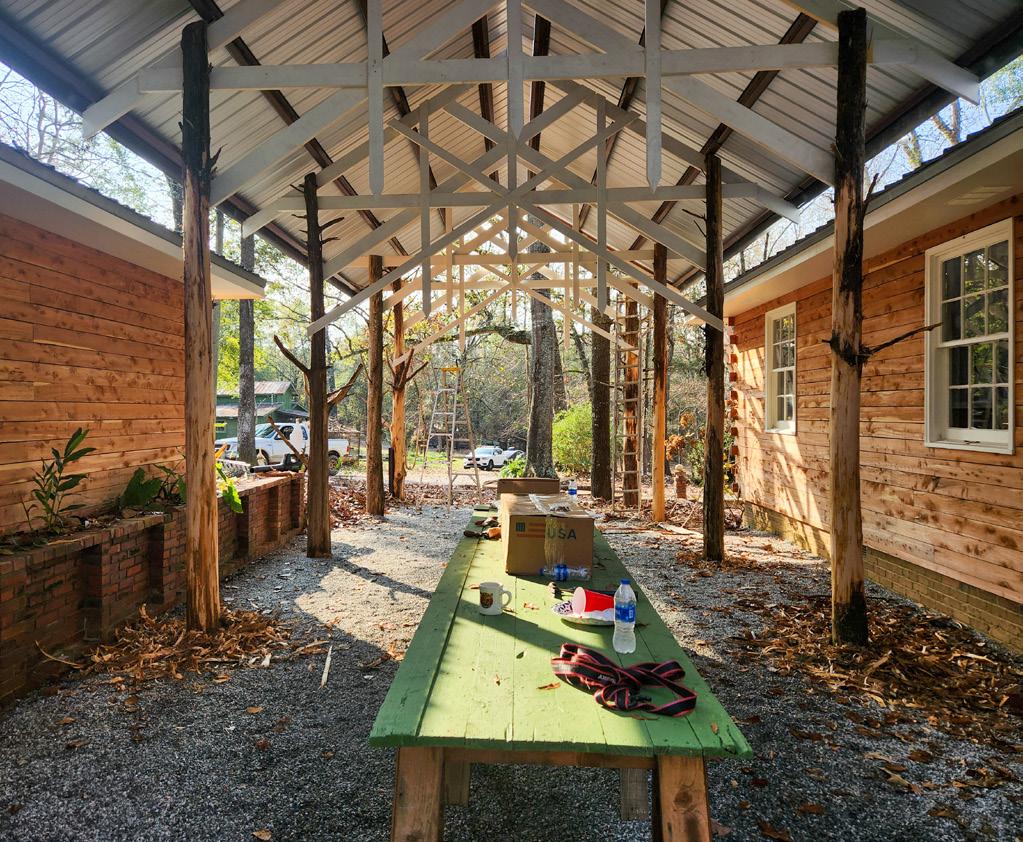 Moundville Archaeological Park is the historic site of one of the largest Native American settlements during the Mississippian culture. Today, 29 earthen mounds remain that once served as platforms for residential, civic, and cultural life and ceremonies. The park, owned and operated by the University of Alabama, tasked the Auburn University Rural Studio student team with designing and building a pavilion within the campground, meant