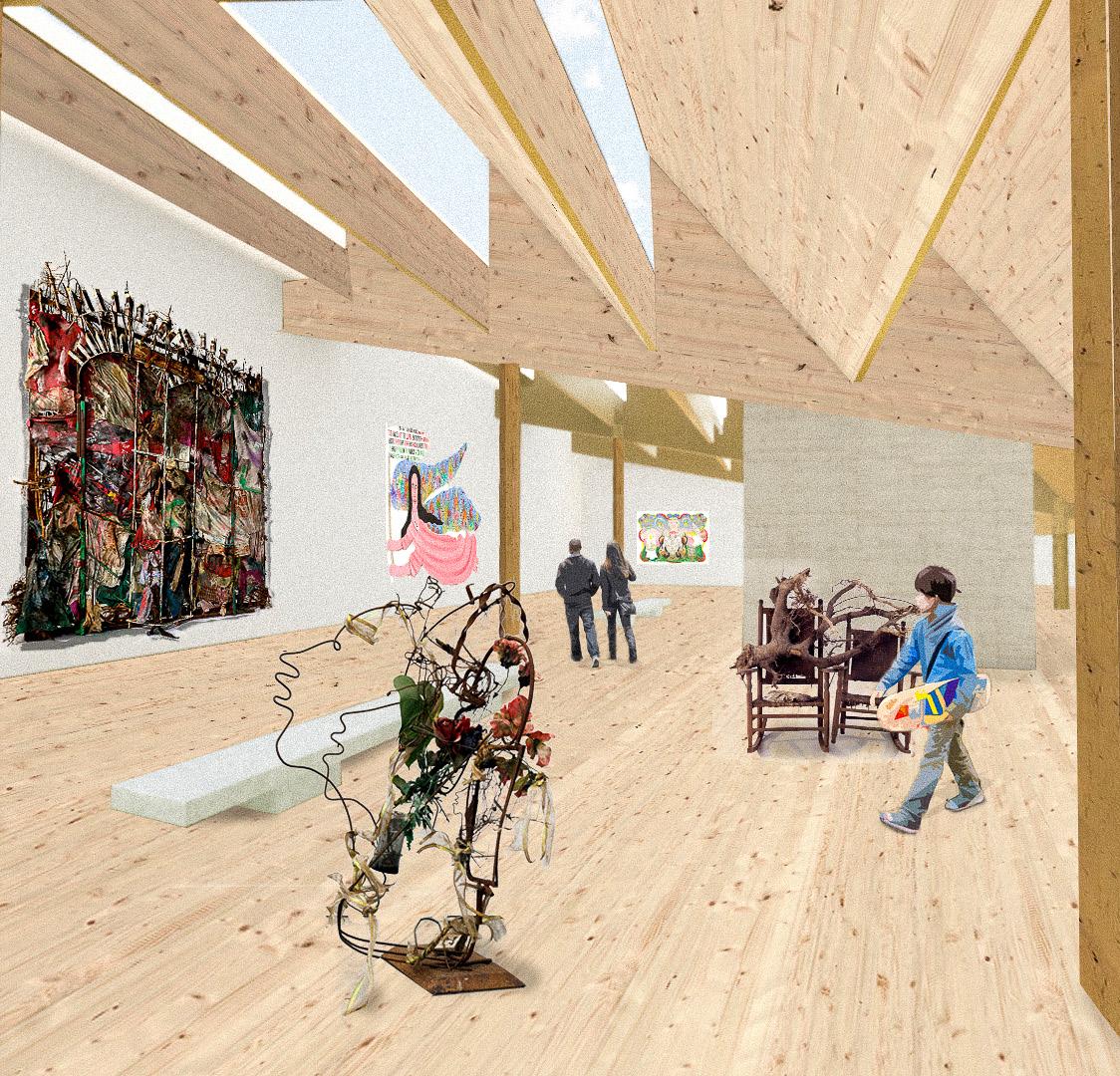 stations, allowing for housing, offices, commercial and retail space, and a series of exterior spaces including the public plaza and sculpture garden. Meanwhile, the new museum desires to create highly adaptable spaces for displaying art while embodying the spirit of the work itself. To achieve this, circulation, and system cores, typically hidden away, are all collaged to the exterior of the building in a way that is reminiscent of rural imagery.