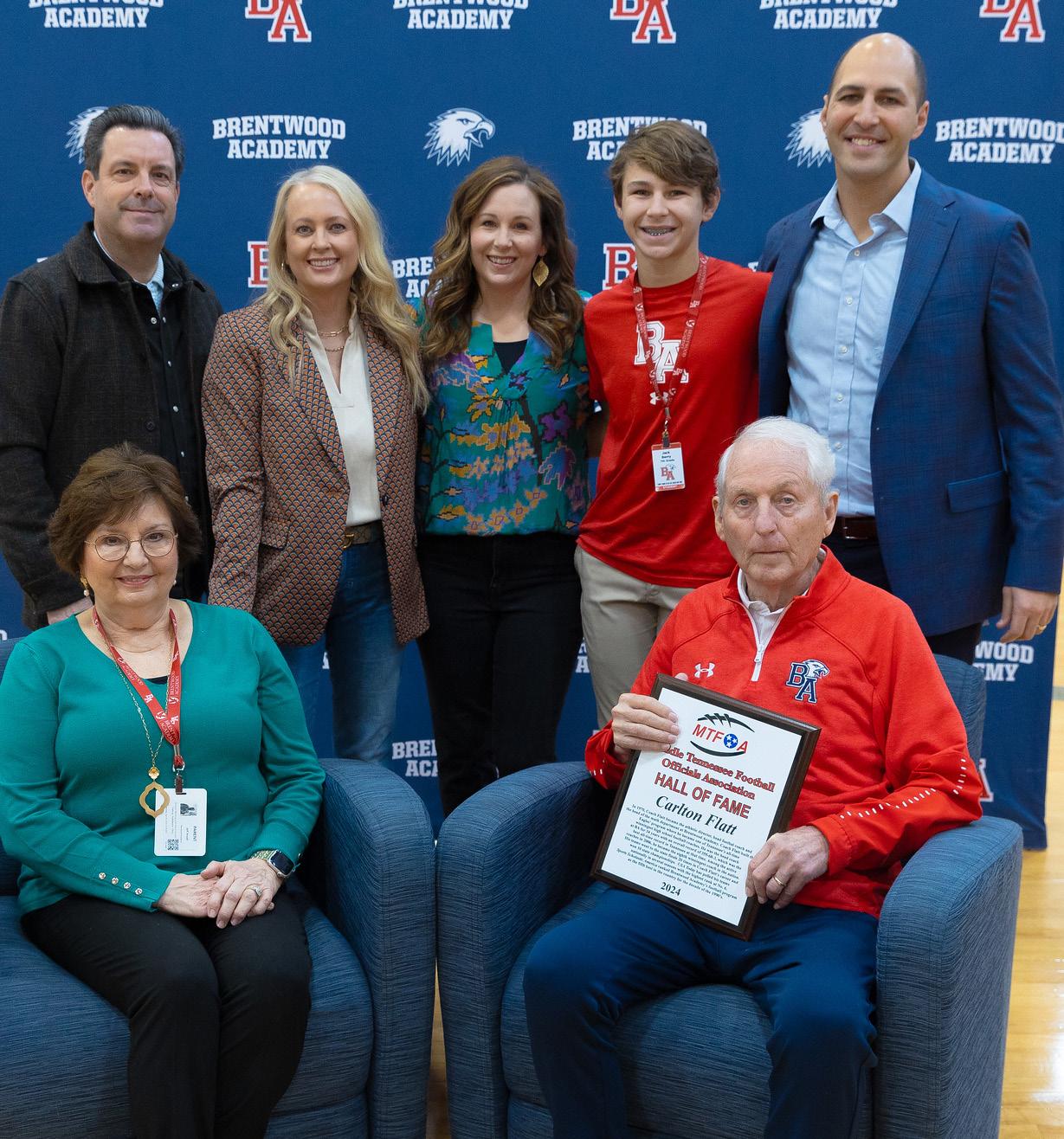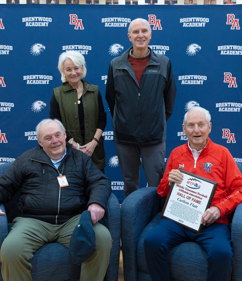 Carlton Flatt received the inaugural honor of being inducted into the Middle Tennessee Football Official’s Association Coaches Hall of Fame in January. With a large number of former Brentwood Academy players and coaches in attendance, MTFOA Board member Junior Ward and other representatives of the organization presented Coach Flatt with the honor on campus.