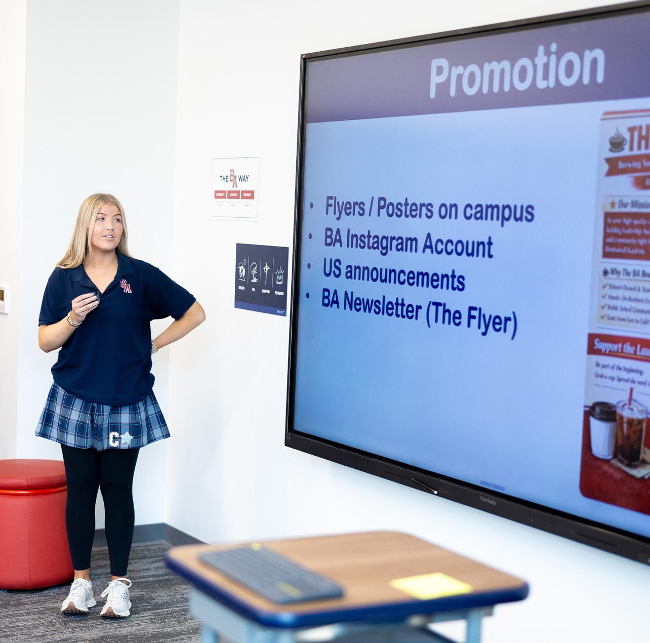 The classroom environment mirrors the entrepreneurial world beyond BA’s campus. Conversations are fastpaced, problems are open-ended, ideas circulate freely, and students are encouraged to test, fail, refine, and try again. In the Revelette Business and Entrepreneurship