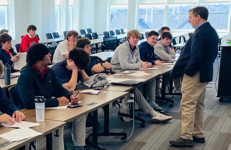 Another key component of the Eagle Fund Investment Club meetings is guest speakers. Local CEOs, business owners, and professionals in the finance world regularly visit to share their experiences and explain their career paths. They also are willing to answer our questions. These conversations give us valuable insight into realworld applications of what we are learning and help us see how these lessons extend beyond the classroom and into everyday life.