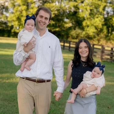 SWEATT ’15 and husband, Jackson, twin girls, Georgia Gaines and Parks Cornelia, born January 26, 2025.