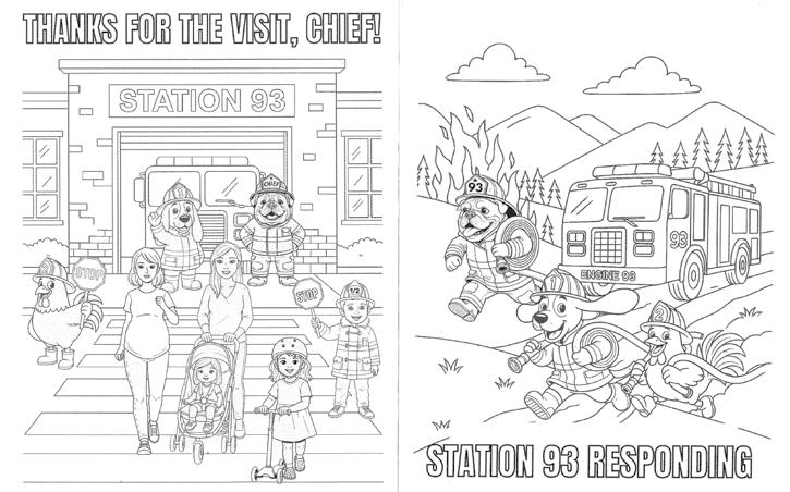 Tovar based the scenes in the coloring book on common facets of firehouse life that she recalled her father talking about, such as relaxing in the Station 93 recreation room, washing the fire engines, putting out the grass fires that were common when Oakley was less dense, holding the Firefighter’s (formerly Fireman’s) Ball, and cooking dinners, which she said the firefighters were exceptionally skilled at. One especially emotional scene for Tovar was the firehouse’s Christmas run.