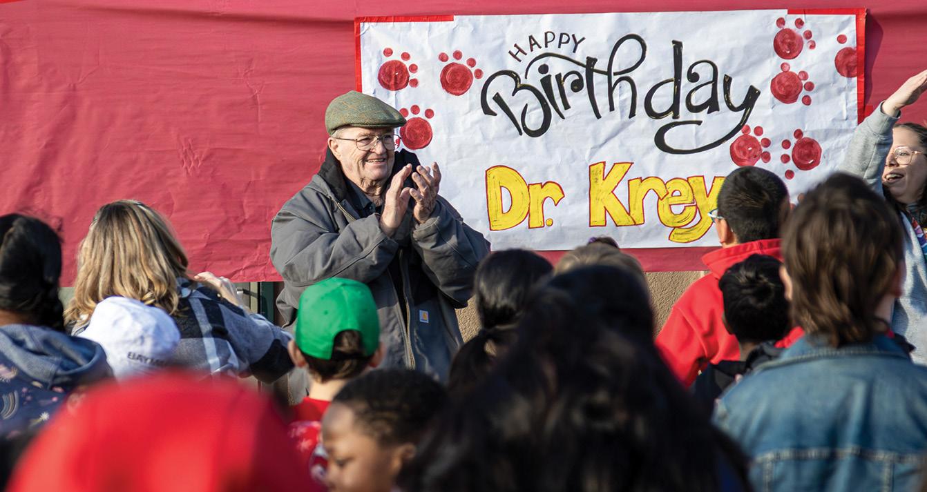 “I think it’s incredible that Dr. Krey can be here with us, celebrating with us,” said Brian Jones, the school’s principal. “It’s important that the kids of the school know who he is and what we represent because he brings a strong set of values about family and hard work. We want them to see that and get to know him.”