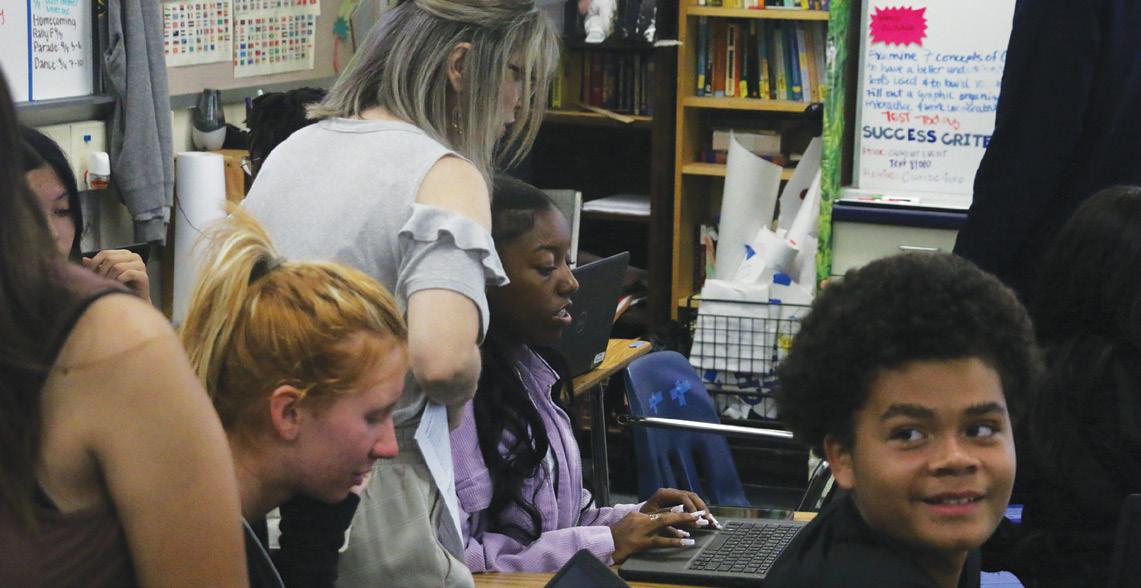Freedom history teacher Sheila Angelo works with her students during Freedom’s Differentiation Week.