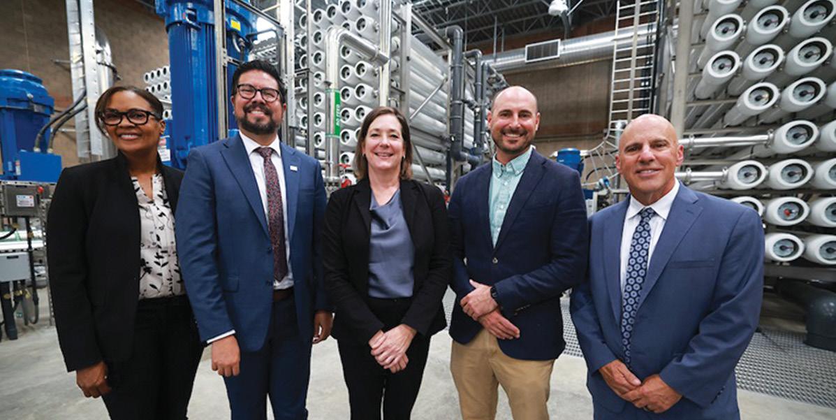 (Left to right) State Water Resources Control Board Member Nichole Morgan, State Water Resources Control Board Chairman E. Joaquin Esquivel, California Department of Water Resources Director Karla Nemeth, DWR Deputy Director of Statewide Water Resources Planning and Enterprise Project Management Joel Metzger and Antioch Mayor Ron Bernal were at the ribbon cutting ceremony for the City of Antioch’s Brackish Water Desalination Plant, a new facility that uses energy-efficient, low-waste technology to treat Delta brackish water.