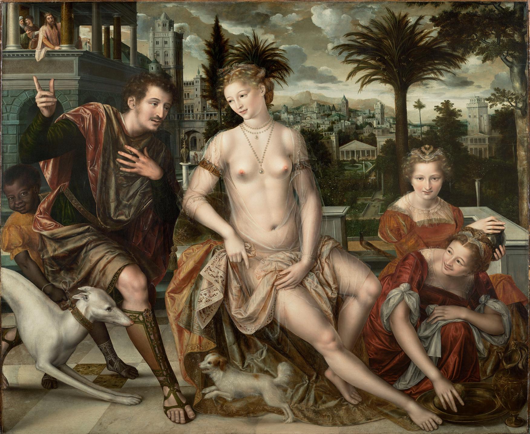 In this chapter I will deal with the paintings that depict female beauty in a variety of ways, and I will try to understand for which clientele they were painted and what their meaning was. They undoubtedly stand as the most interesting part of Jan Massys’s artistic production, for which the artist developed a particular and highly recognizable brand, marked by specific means of expression.5 They were goddesses, figures of Caritas, protagonists from episodes taken from the Old Testament, such as Judith, Susanna, Bathsheba and Lot’s daughters, whose stories lend themselves to the representation of sensual, sometimes provocative scenes. The accuracy with which these works were technically executed, as well as the abundance of details in their depiction – garments,